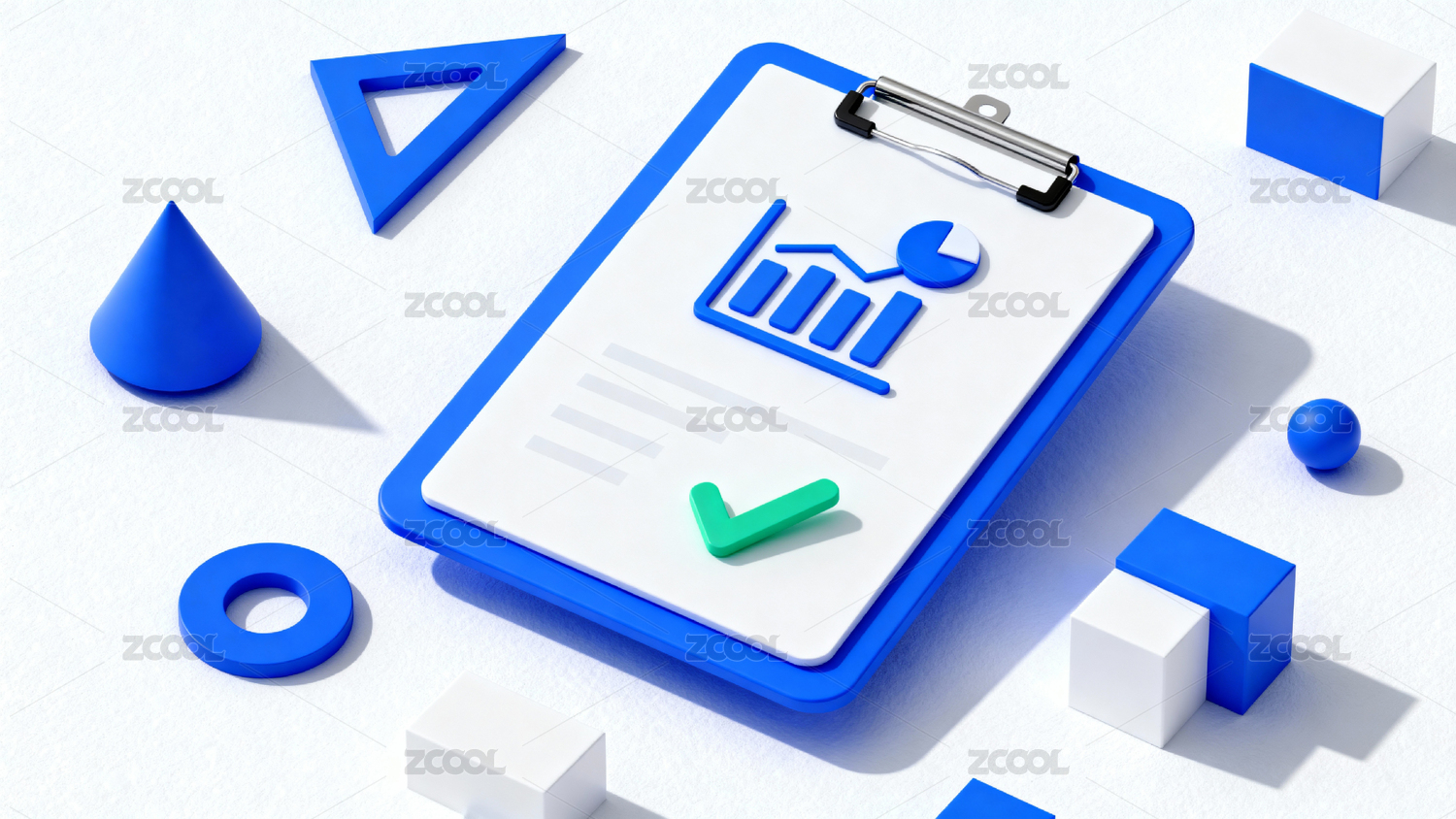 蓝色几何图形与剪贴板设计