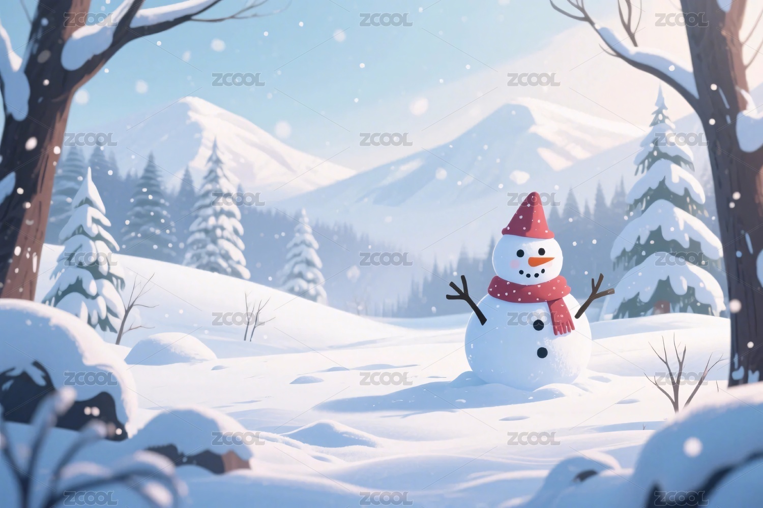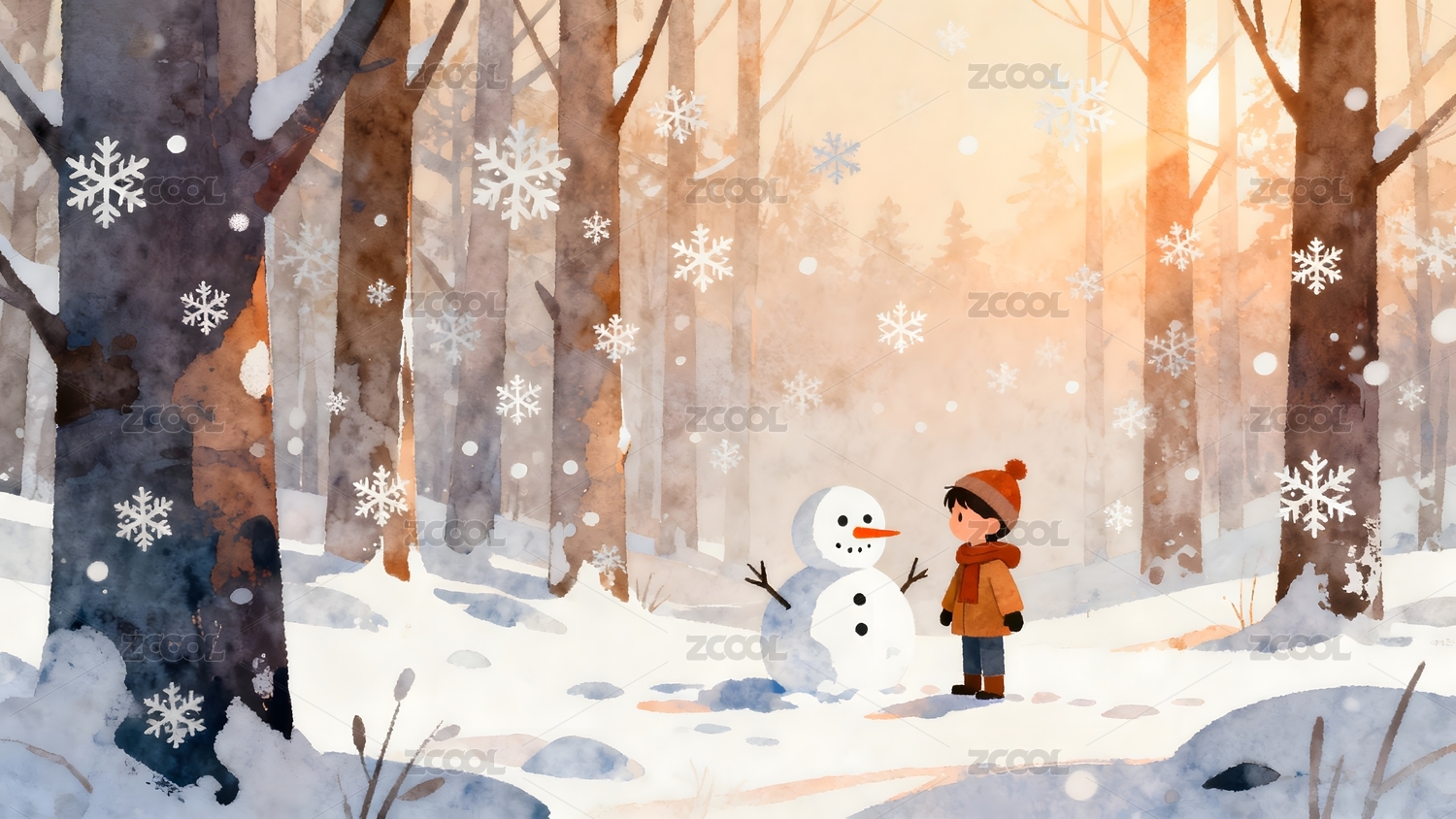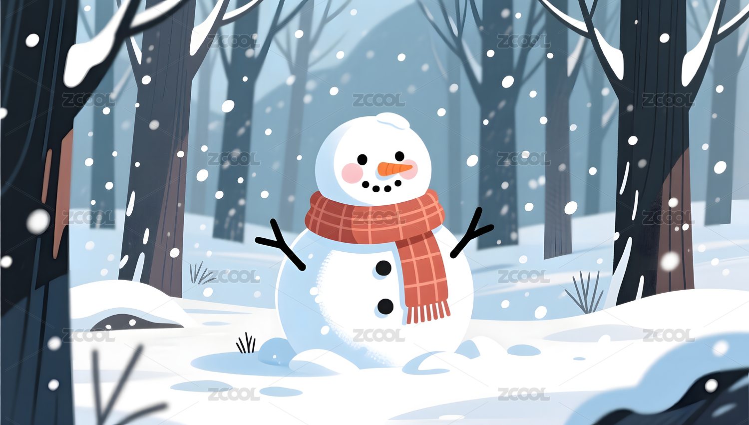 雪人,雪地,森林,雪花,插画,冬天,围围巾,下雪,积雪,卡通
