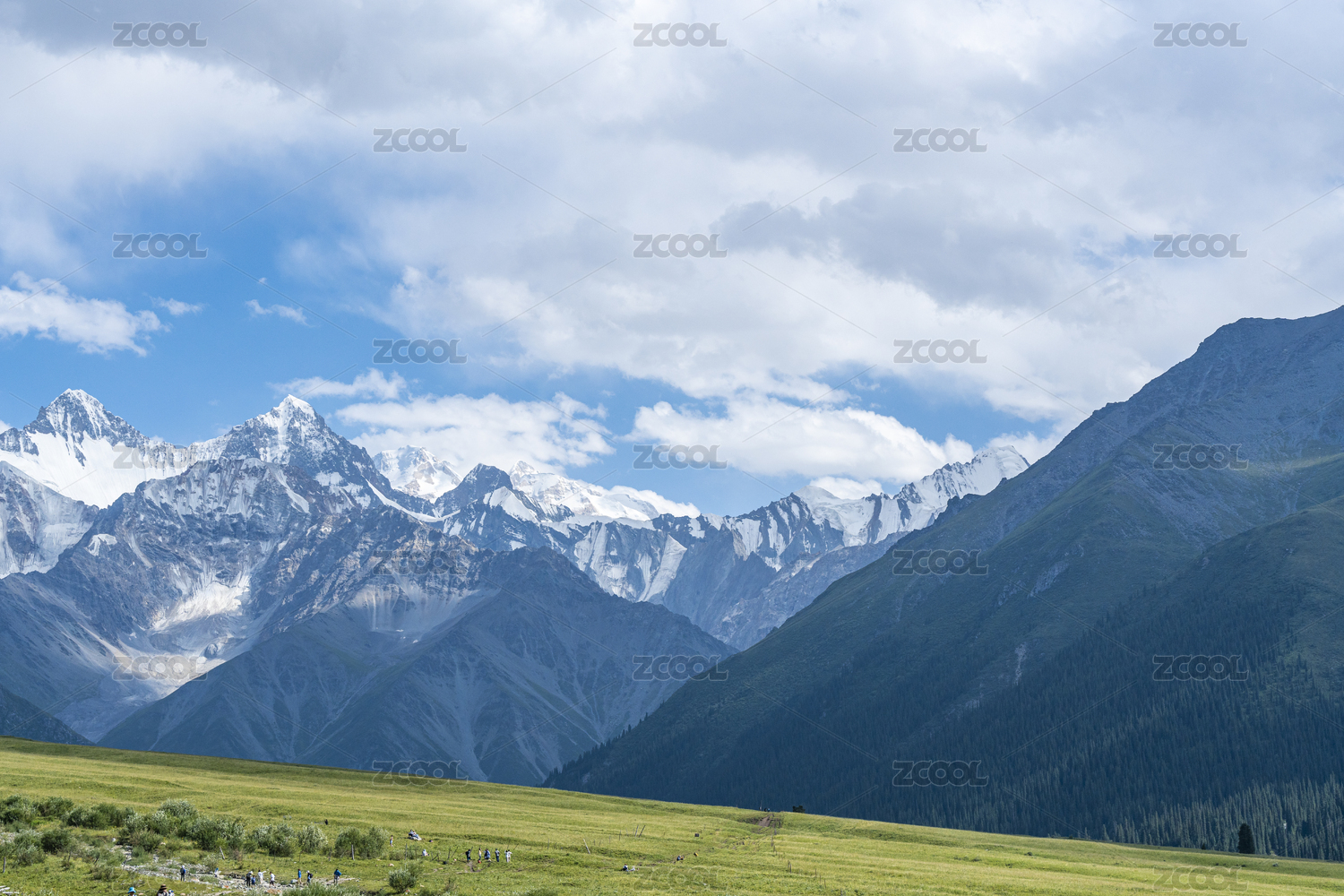 中国新疆伊犁夏塔景区雪山草原自然风光