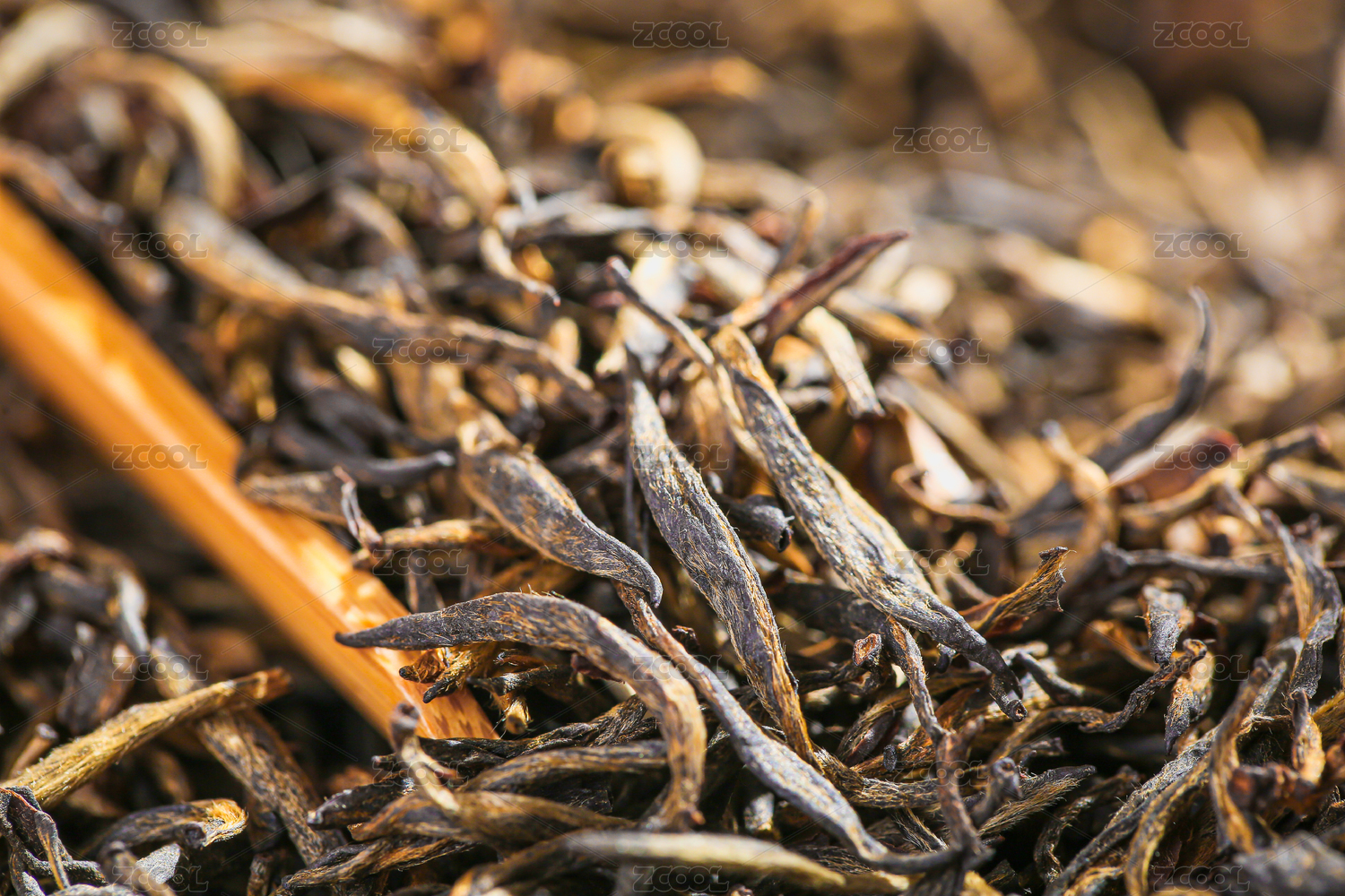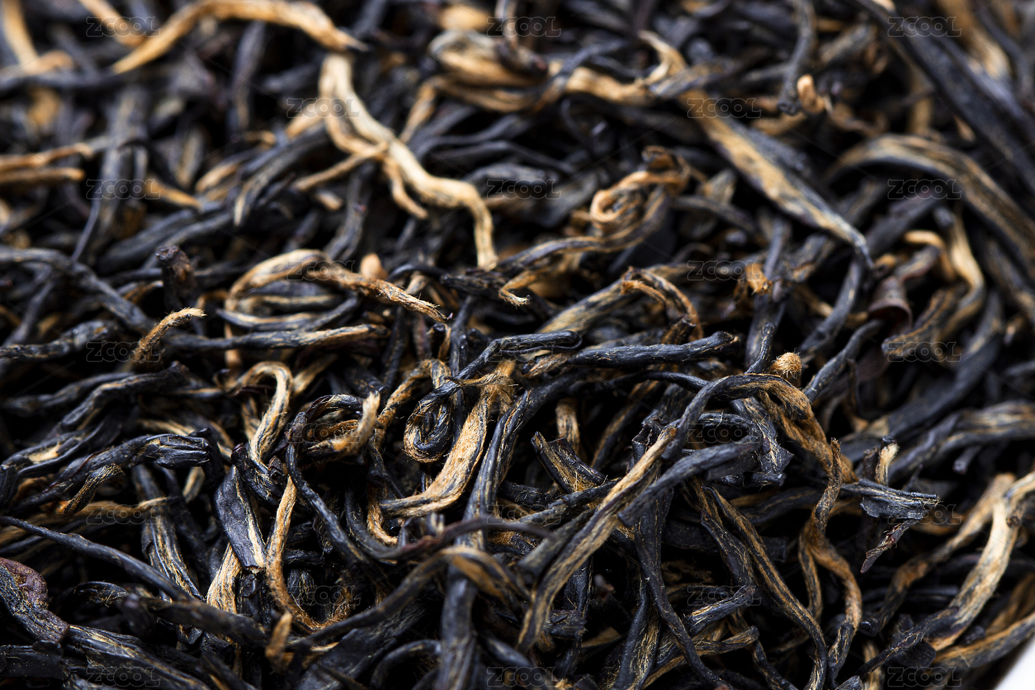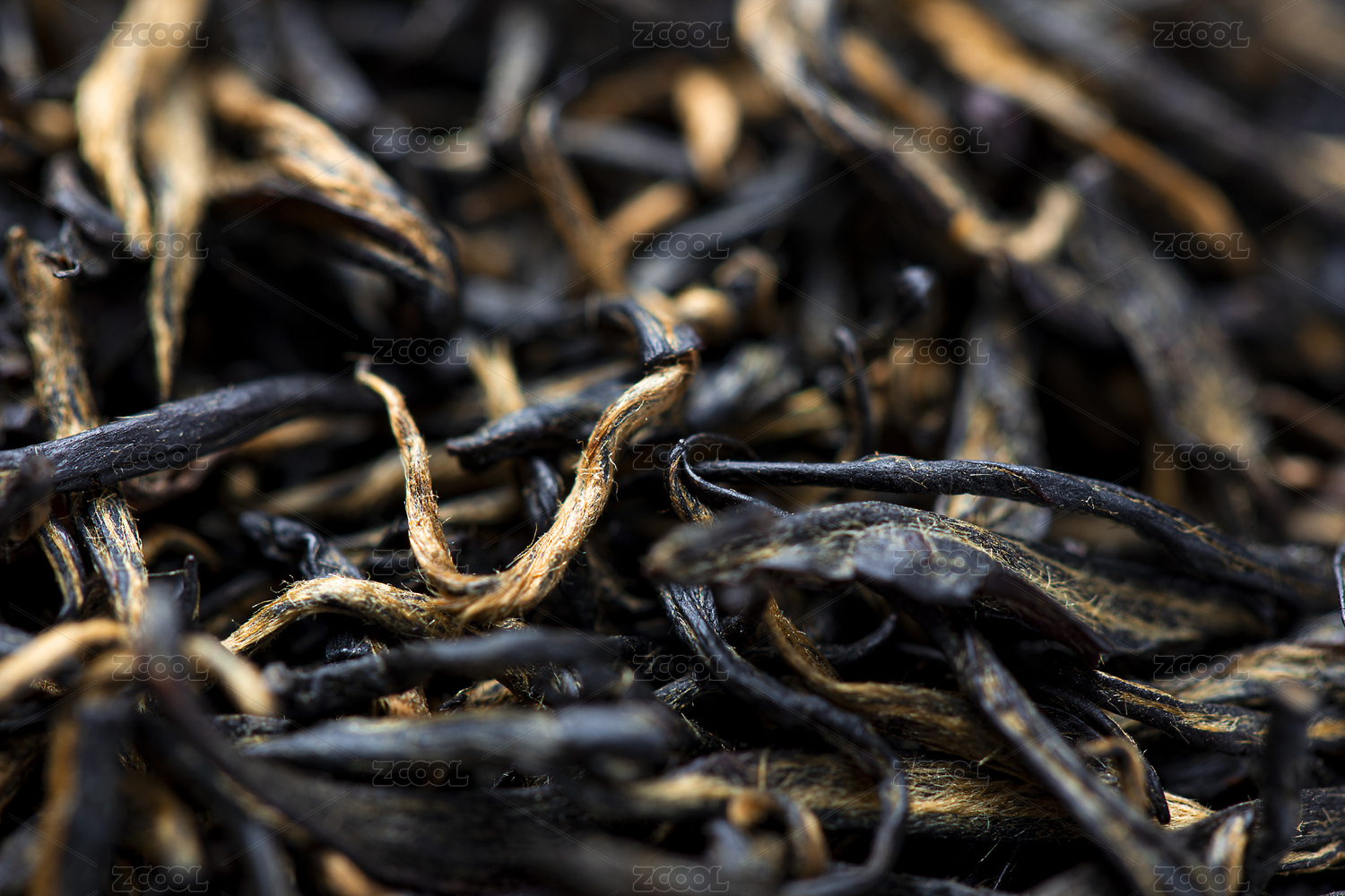 青花瓷盘子里面放着明前信阳毛尖干茶近摄