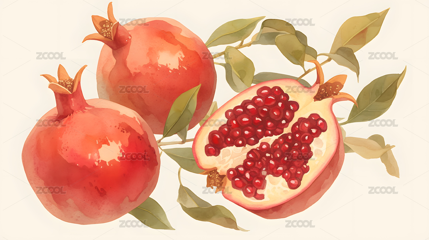 手绘,卡通,石榴,水果,果实,种植,植物,插画
