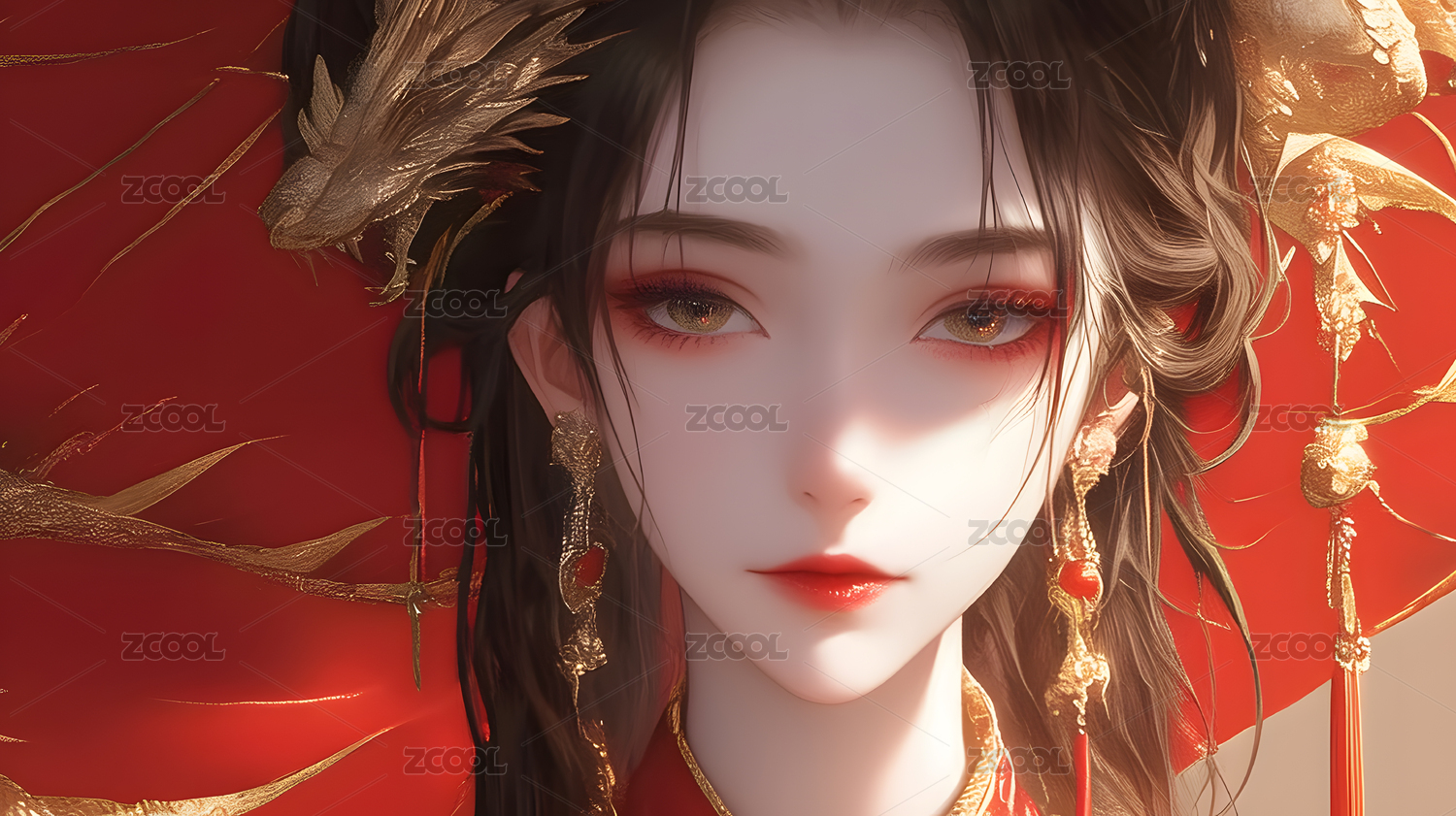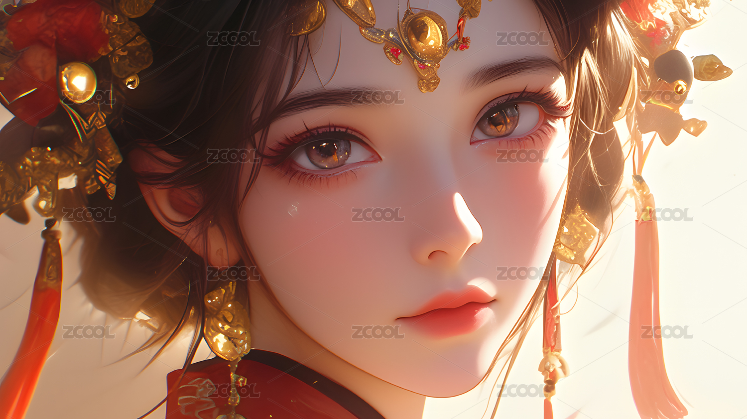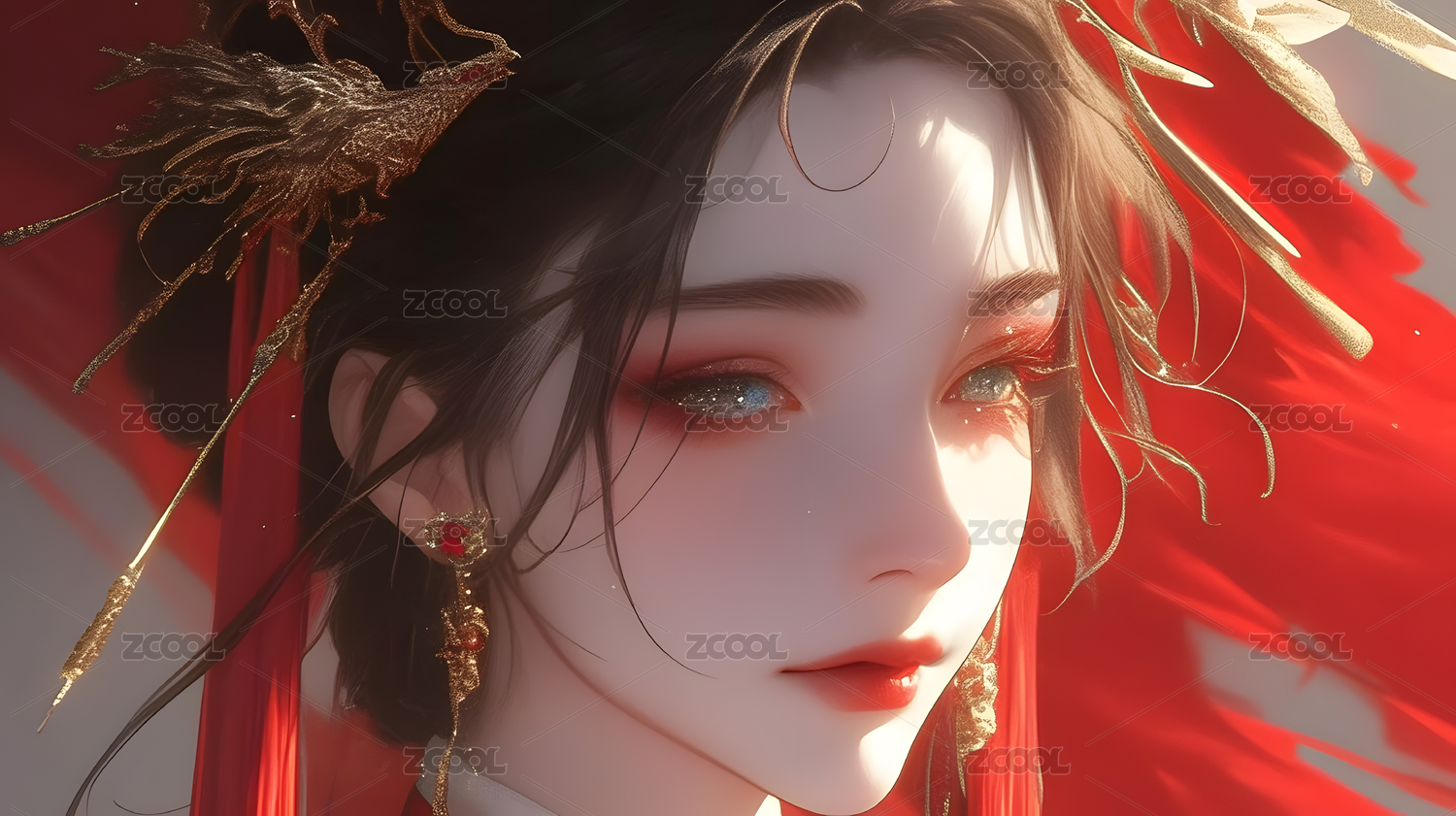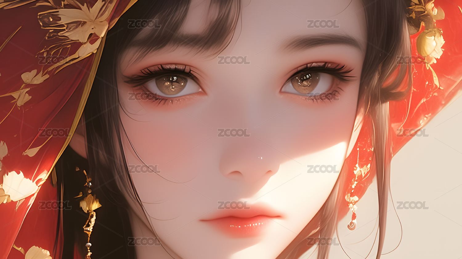 艺术,唯美,美人,AI数字艺术,精致,特写,妆容,发饰,东方,女性