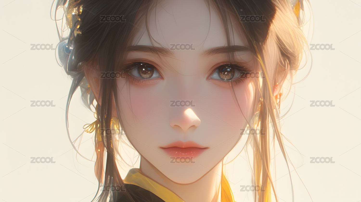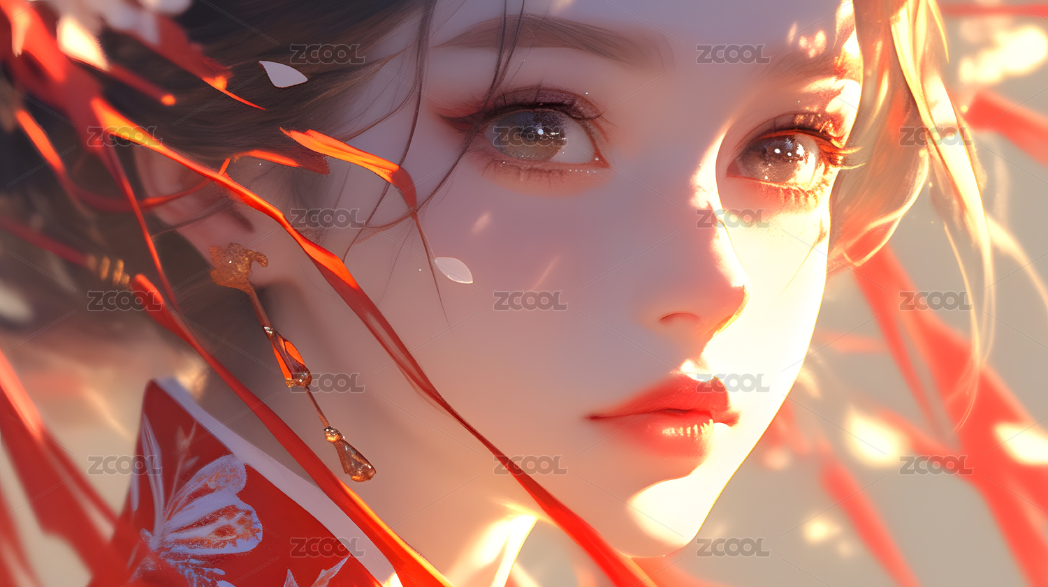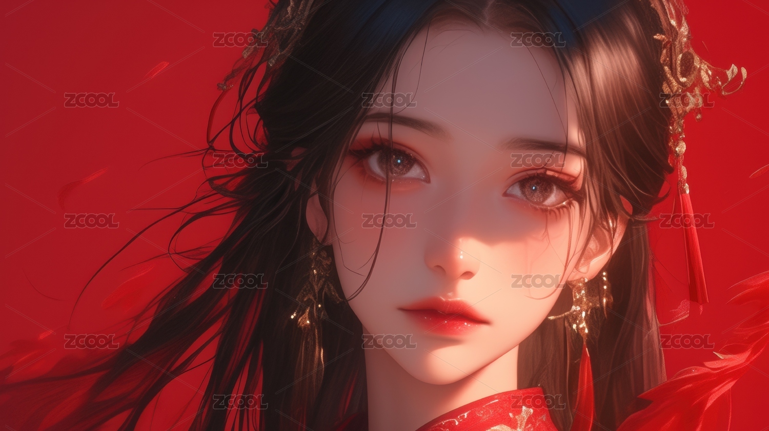 艺术,唯美,美人,AI数字艺术,精致,特写,妆容,发饰,东方,女性