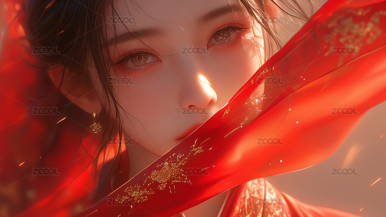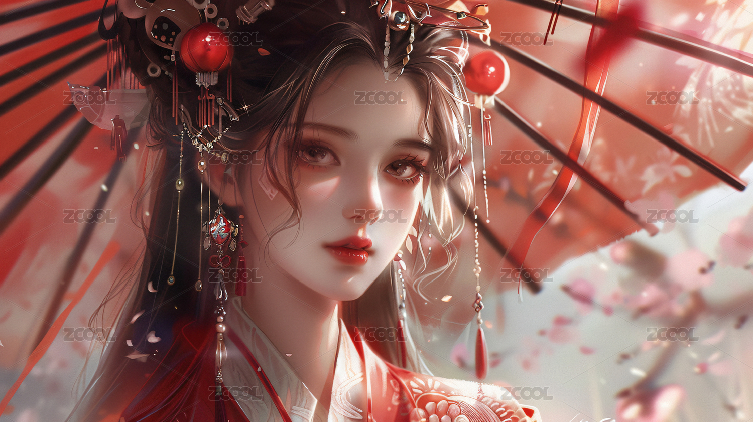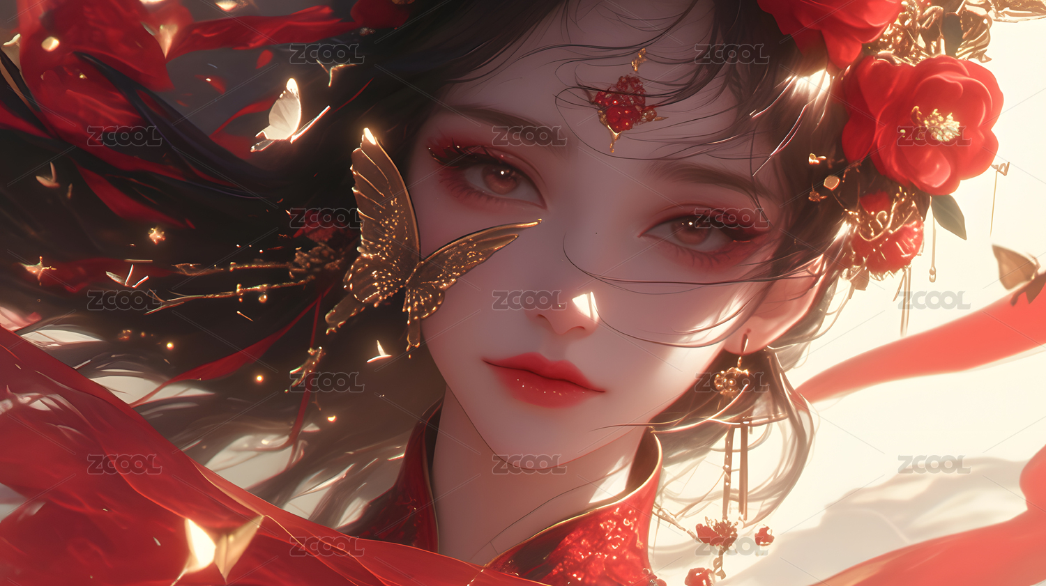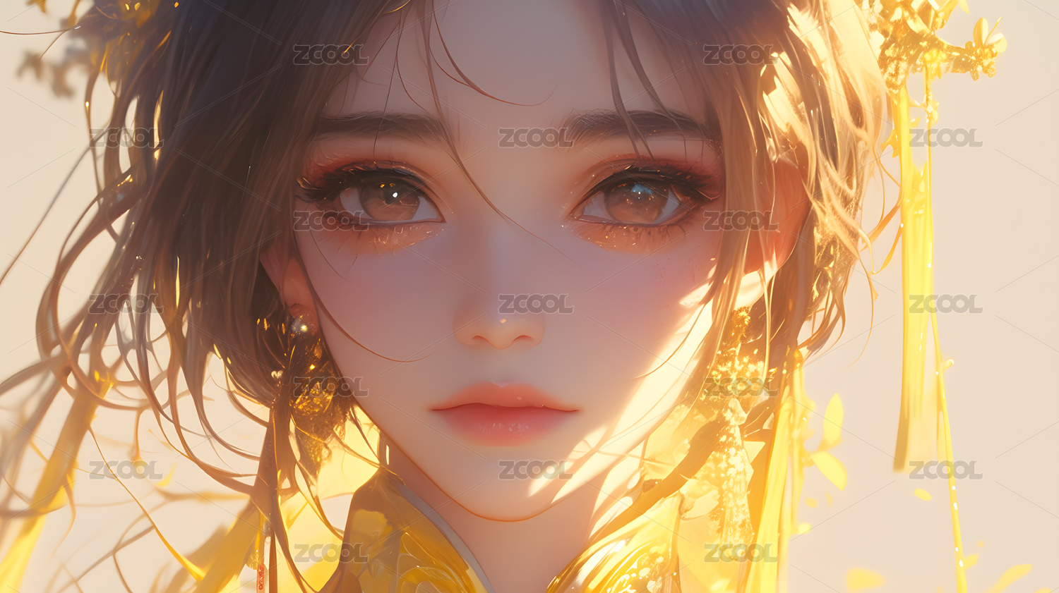 艺术,唯美,美人,AI数字艺术,精致,特写,妆容,发饰,东方,女性