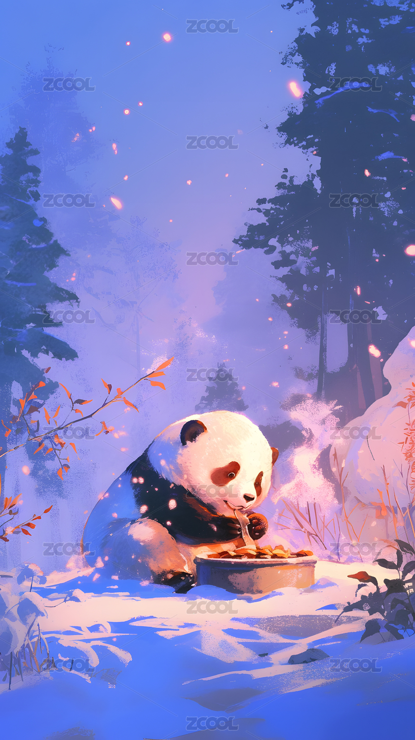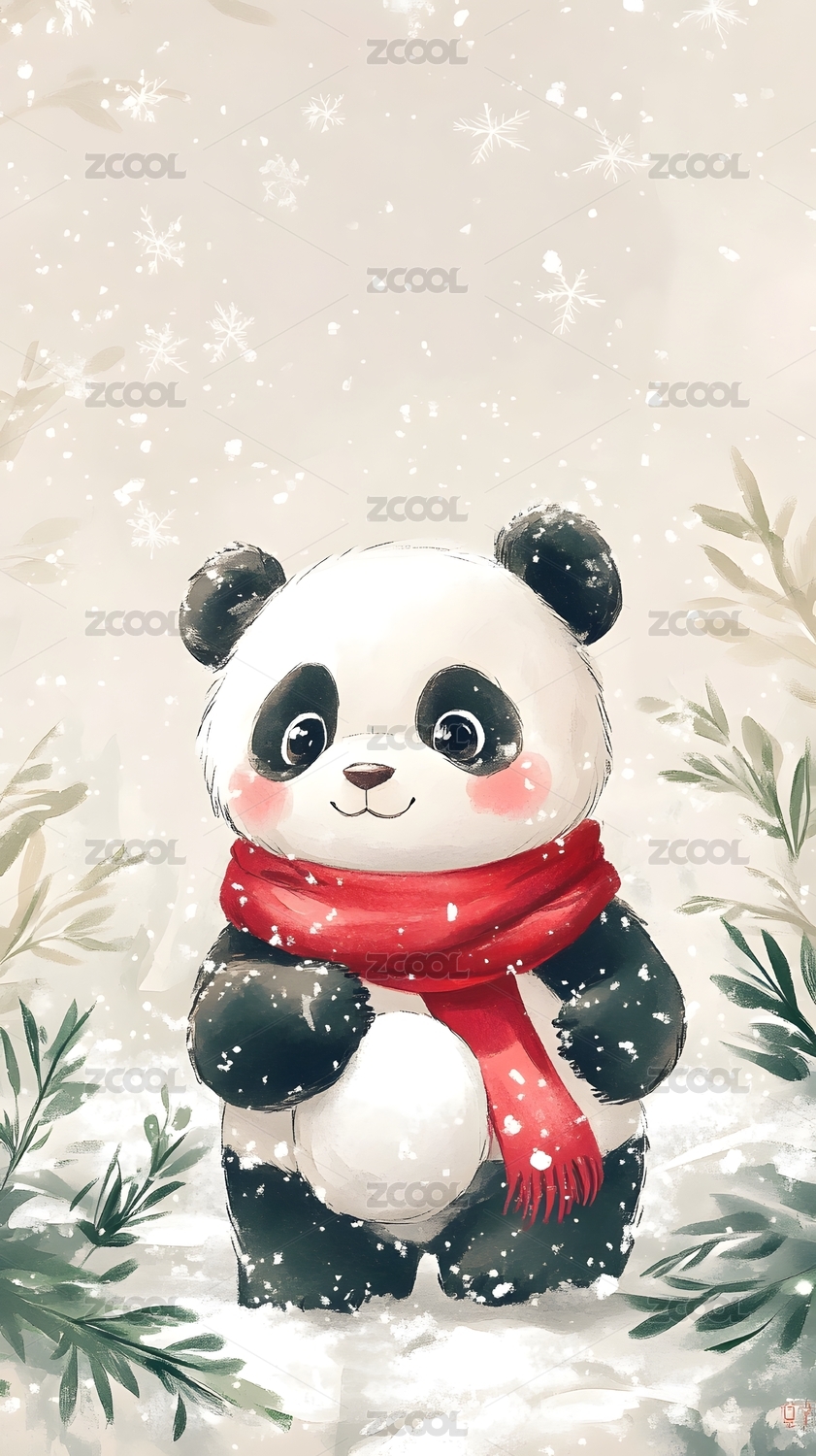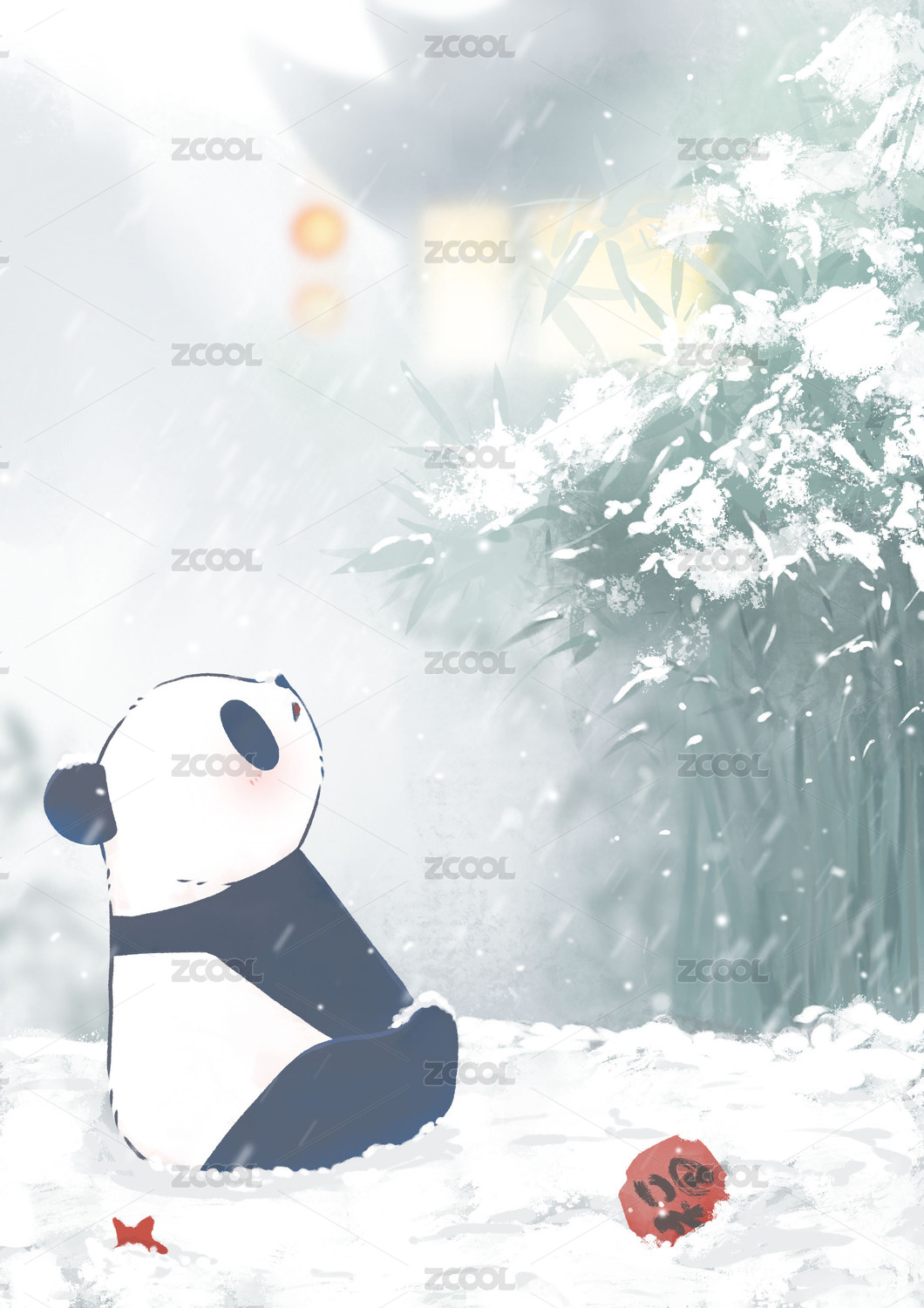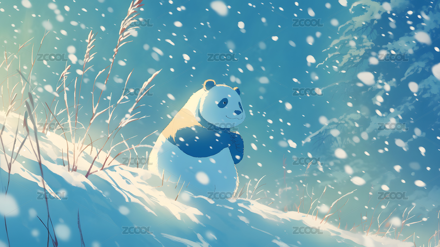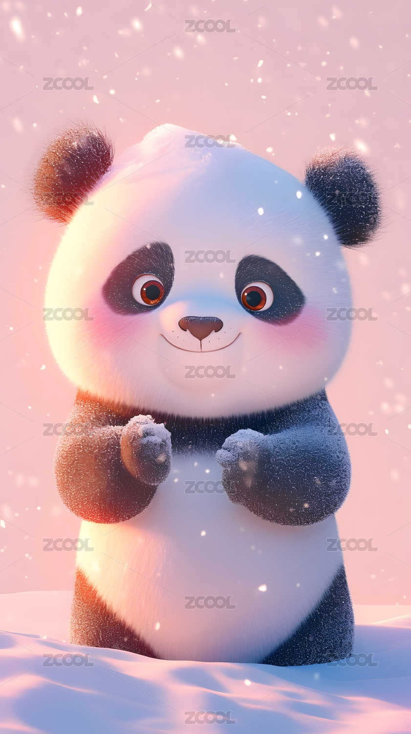 大熊猫可爱唯美野生动物3D卡通插画壁纸