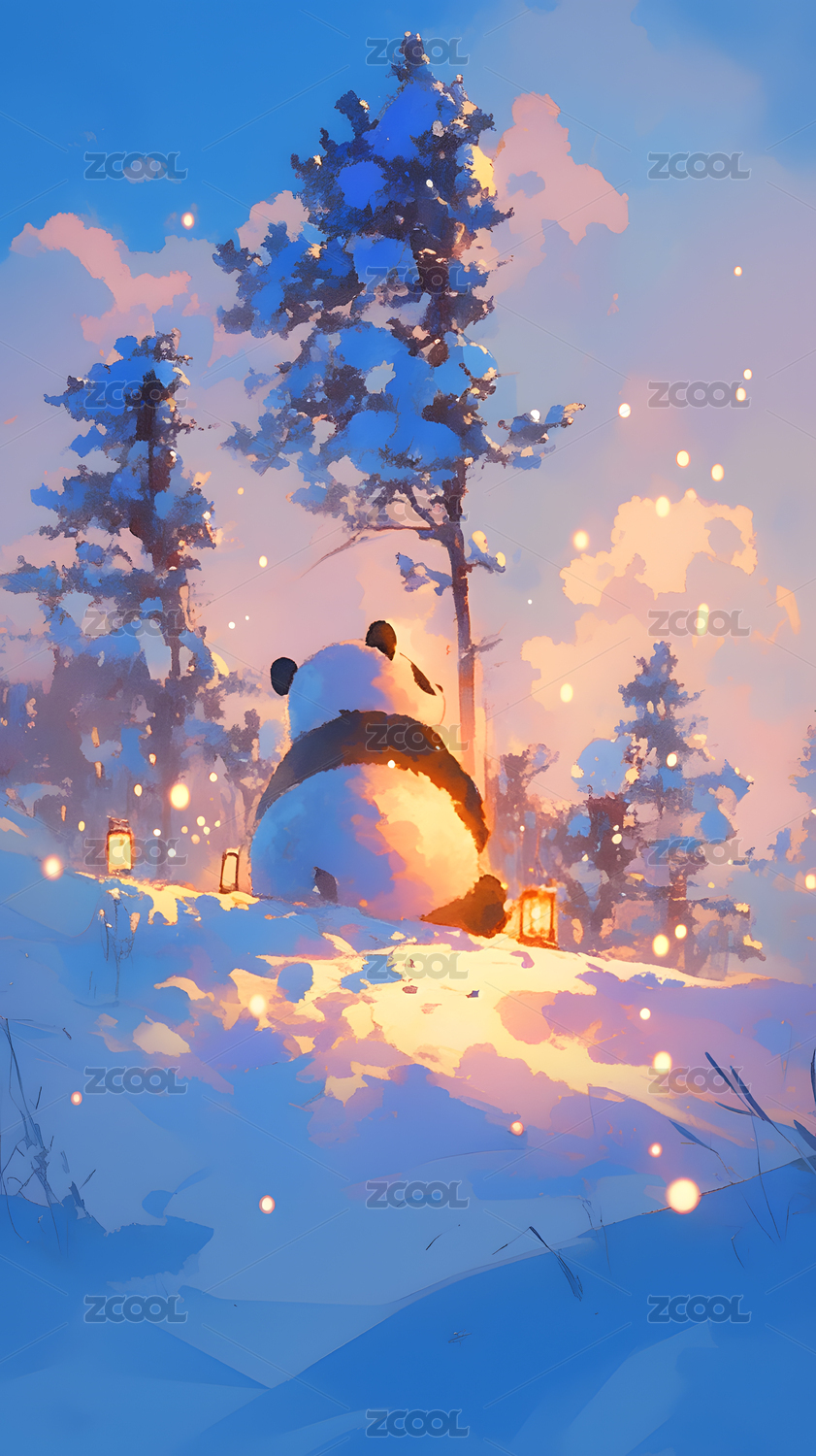 熊猫,数字艺术,AI,艺术,冬日,高清,温馨,雪景,母子,画面