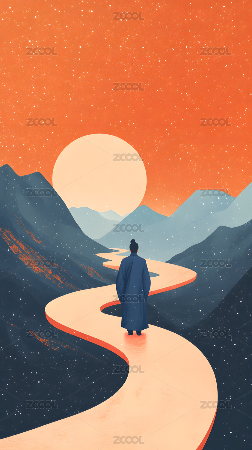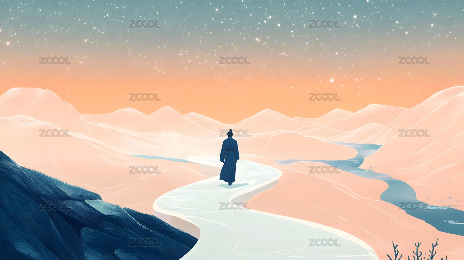 插画,抽象,AI数字艺术,AIGC,艺术,神秘,人物,山脉,河流,绘画