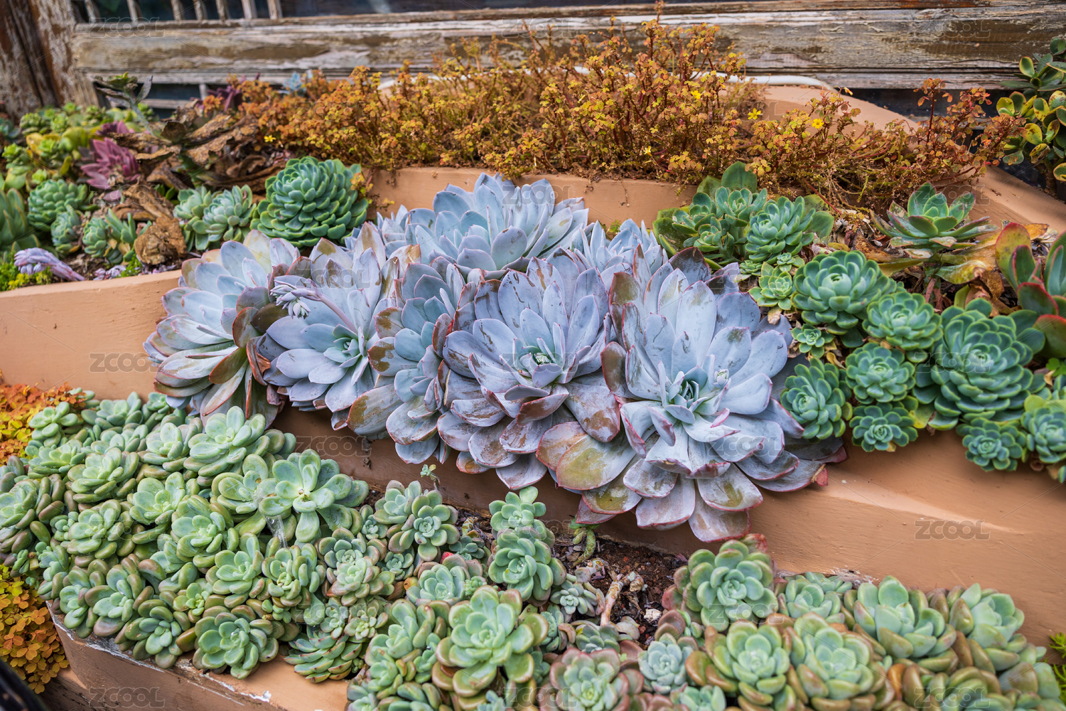 花圃里种植的多肉植物