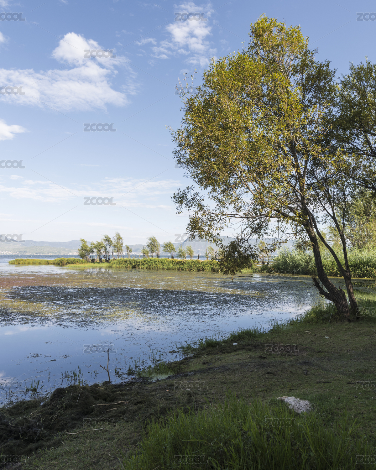 中国,云南,大理,洱海,秋季,白天,湖泊,湖畔,树,天空