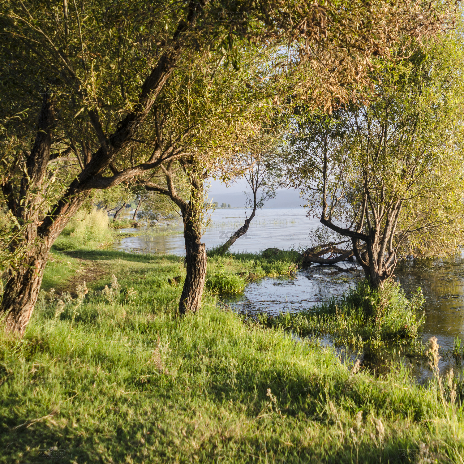 云南大理洱海湖畔湿地公园生长在水中的树林