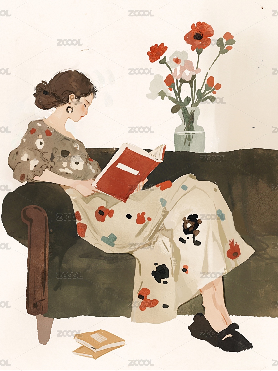 少女阅读插画