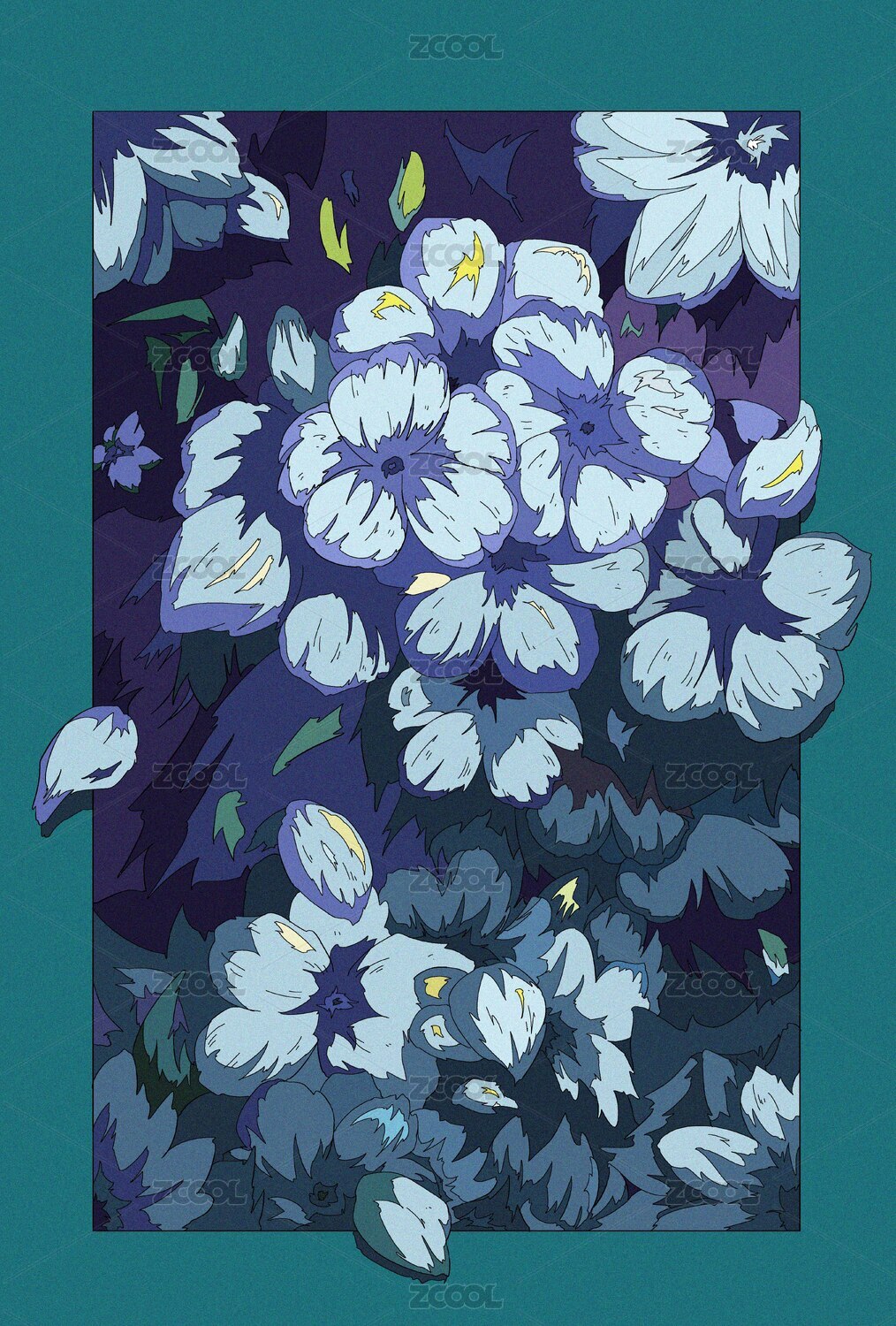 蓝色花朵装饰画