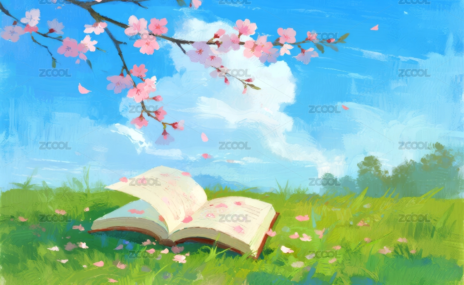 书本清新感春日场景