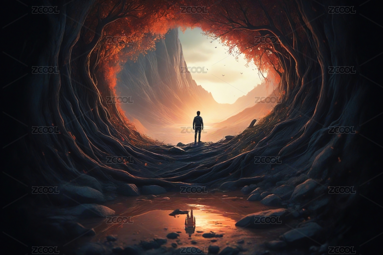 孤独,奇幻,光芒,未知,冰雪,洞穴,火焰,旅行者,探索,风景