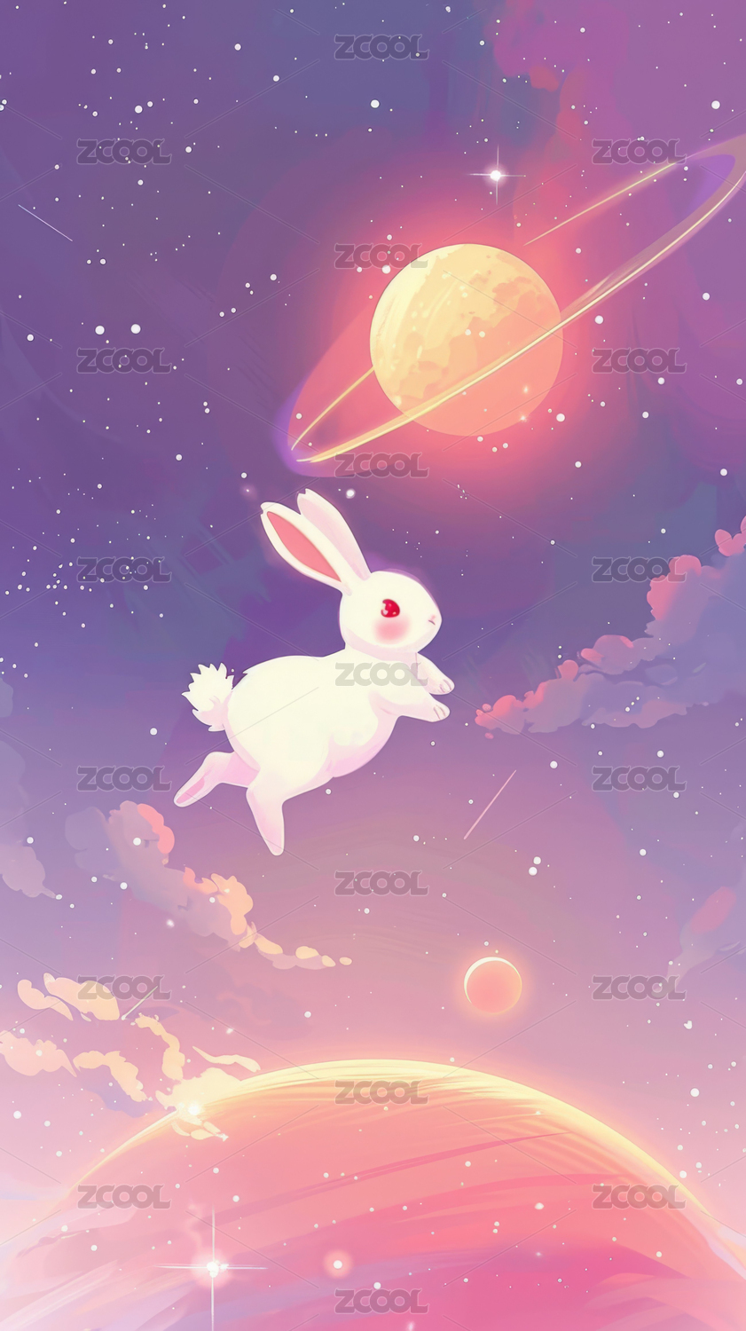 奇幻宇宙兔子插画