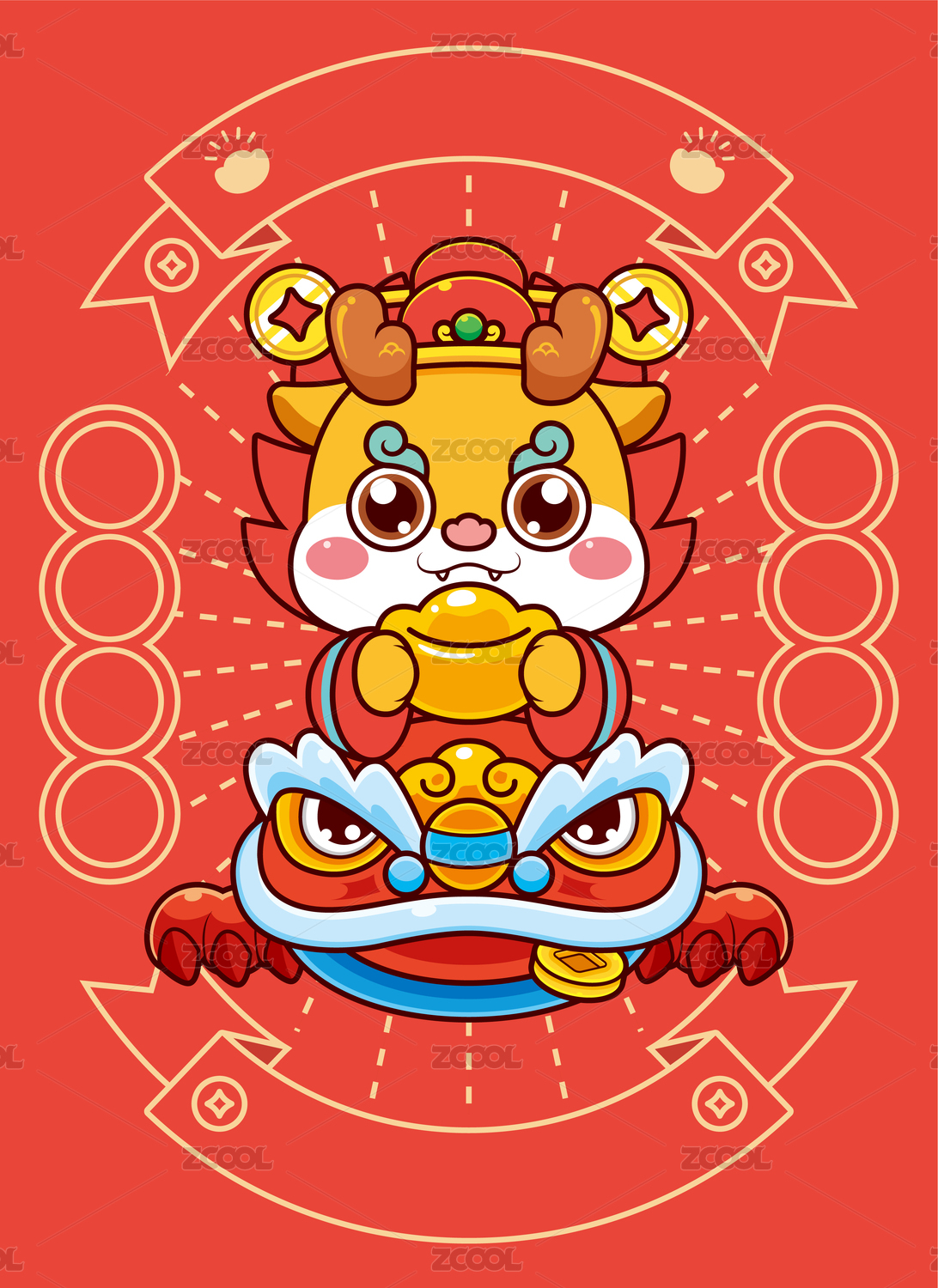 新年,春节,龙年,龙,可爱,卡通,喜庆,贴纸,节日庆典,吉祥物