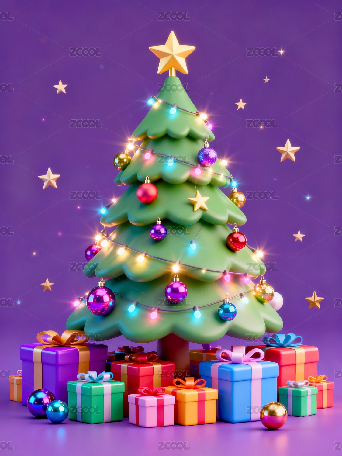 三维图形圣诞节日圣诞树场景背景