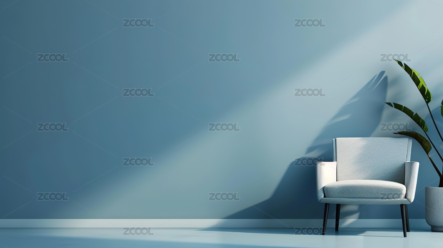 蓝色背景下的空椅子