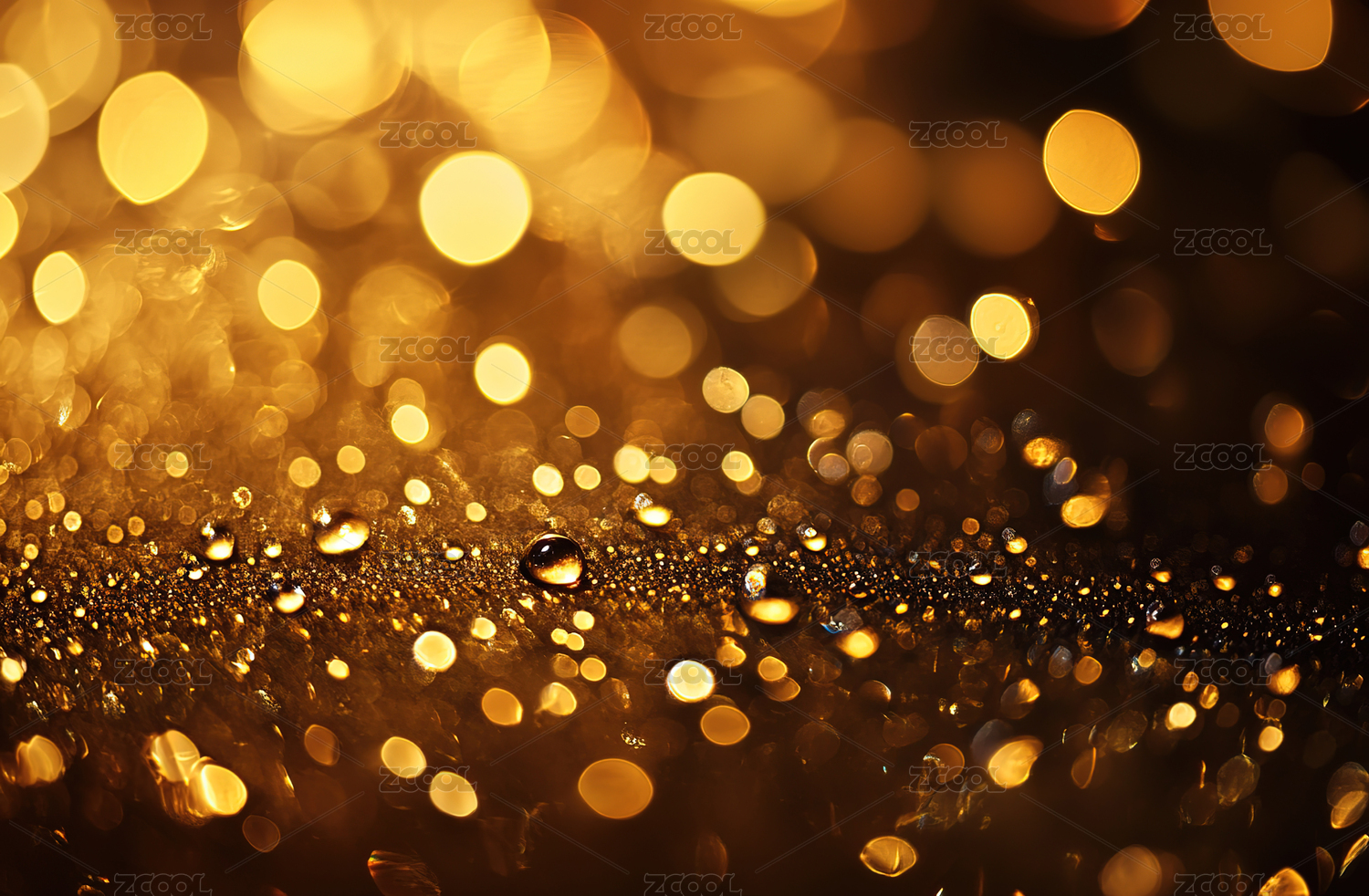 模糊渐变背景下液体中的抽象油滴,金色油滴