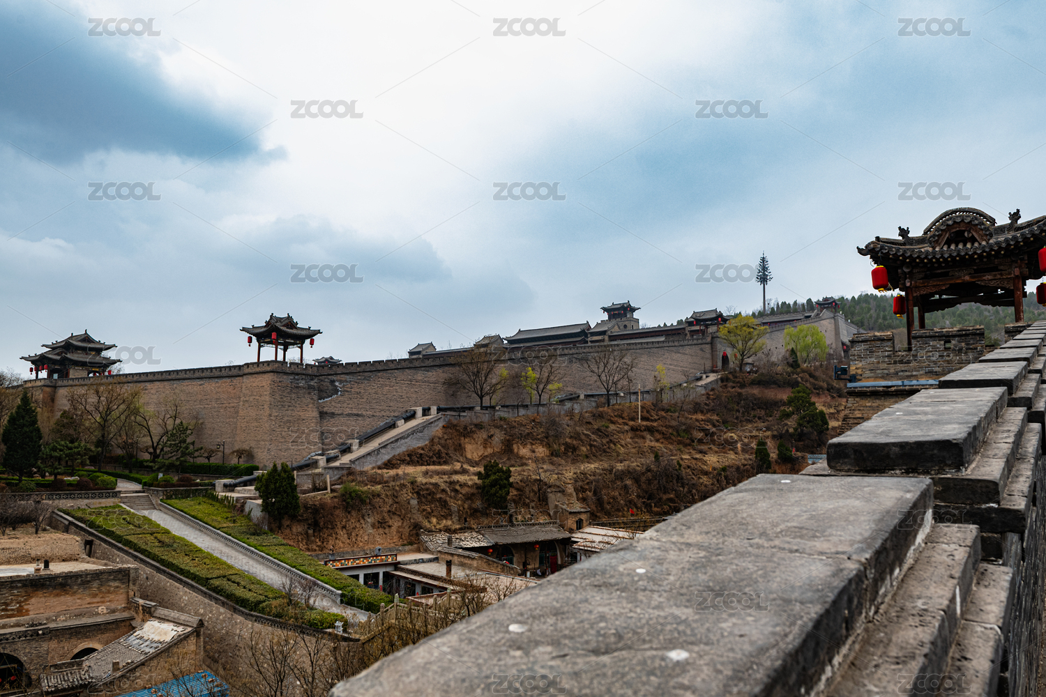 中国山西省大同市明代古城墙园林建筑