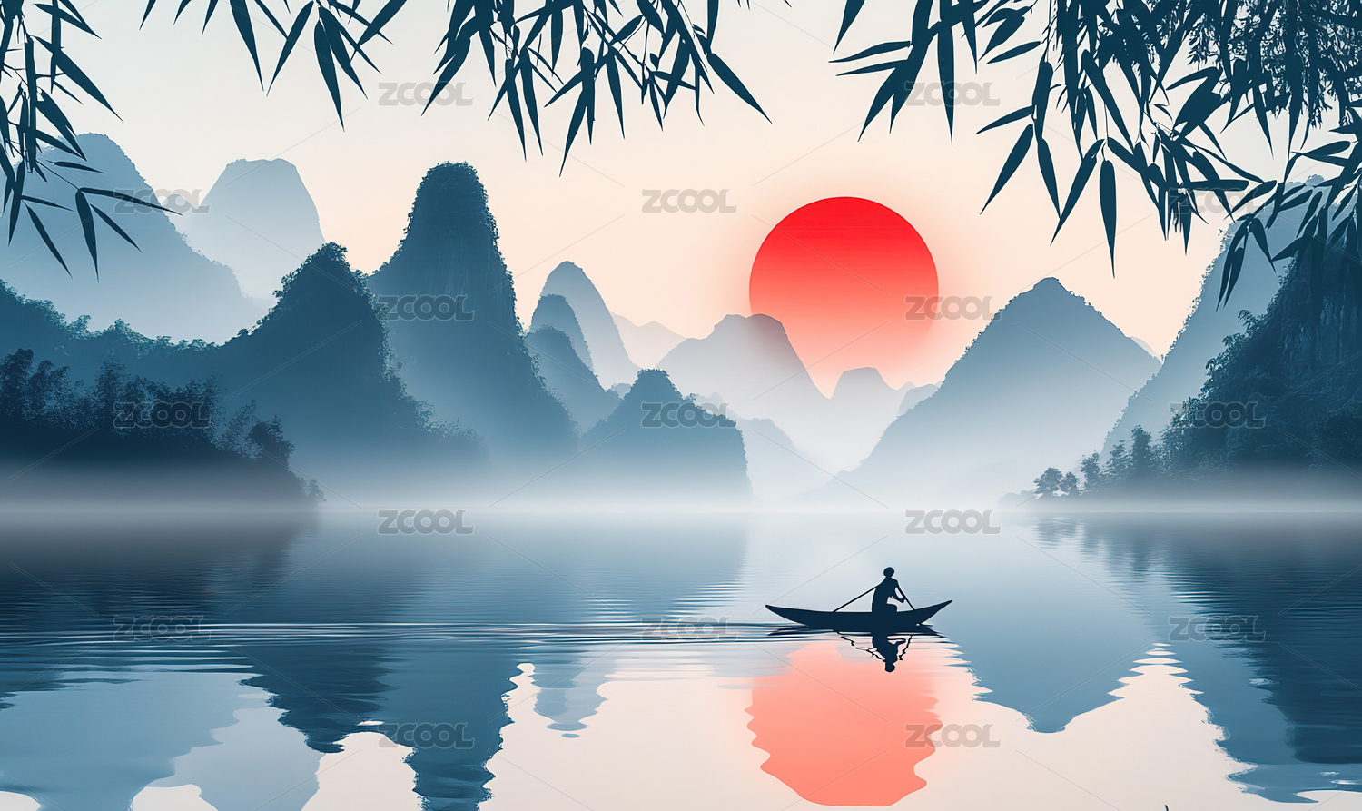 自然,高山,风景,水墨画,自然美,中国文化,国风,户外,插画,AI数字艺术