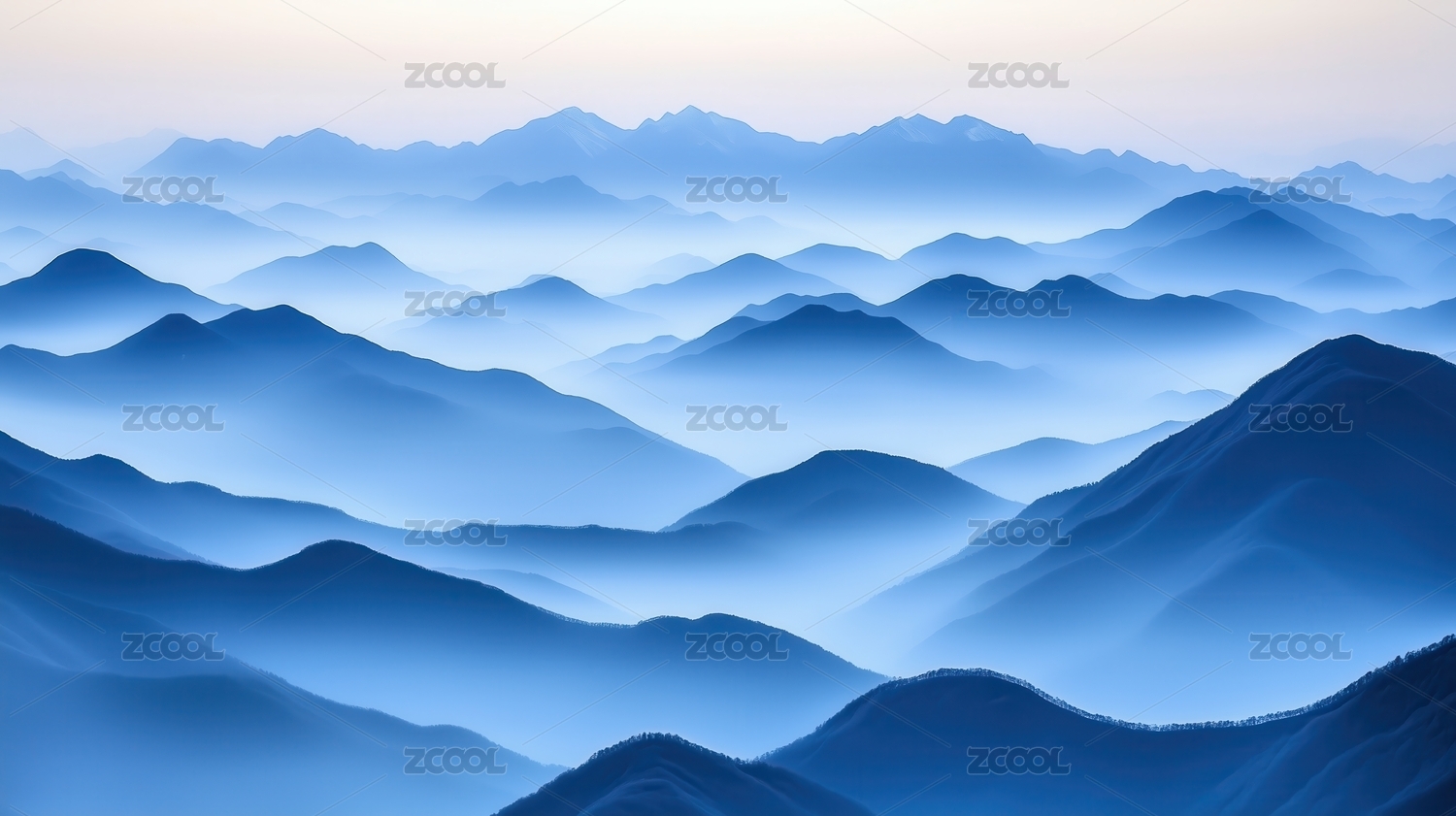 朦胧山峦蓝调意境