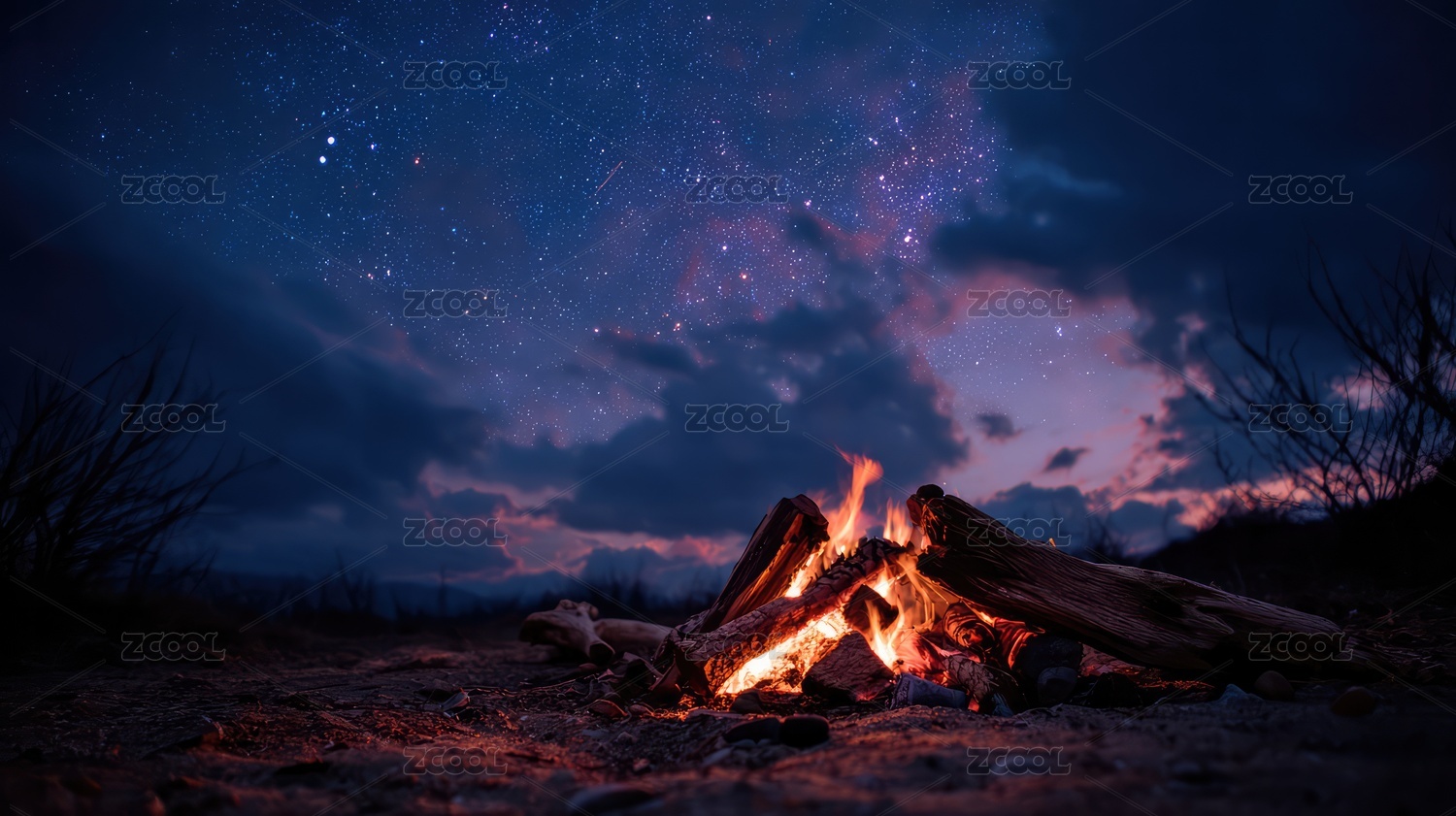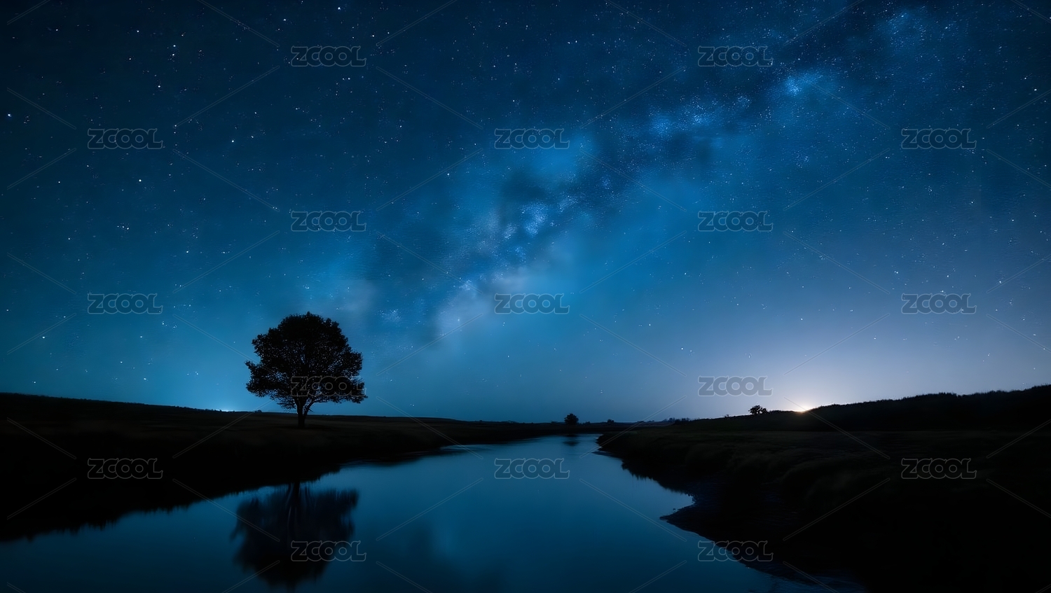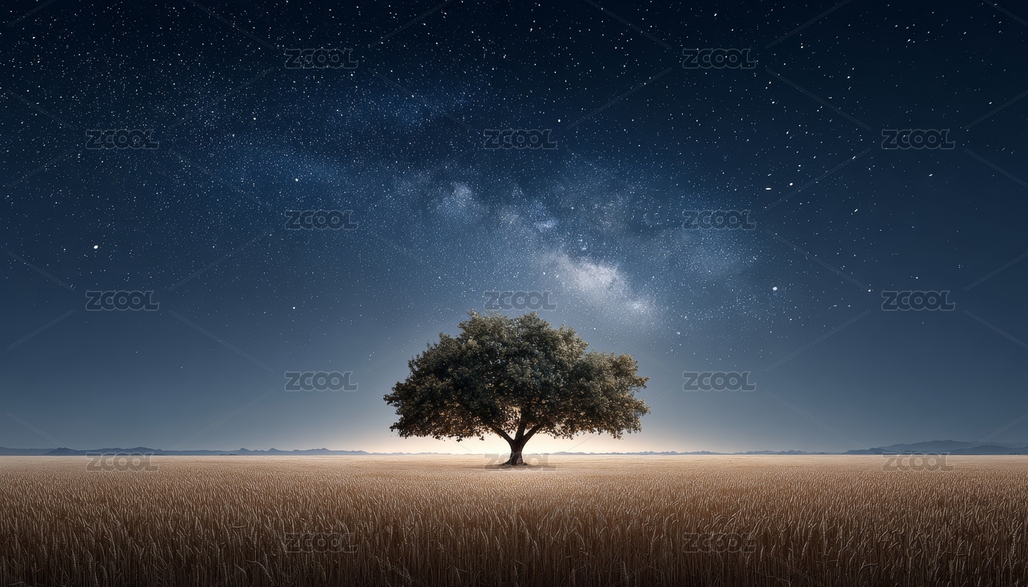 中国新疆阿勒泰草原树木星空银河夜晚自然风光