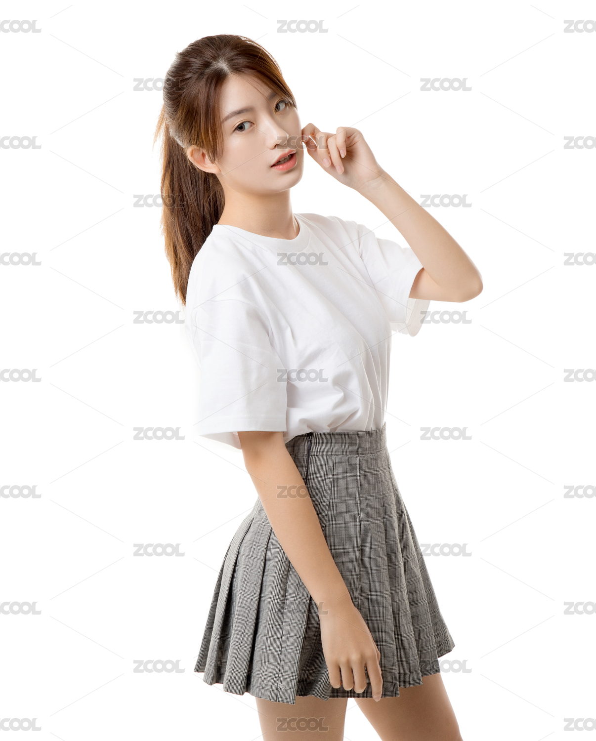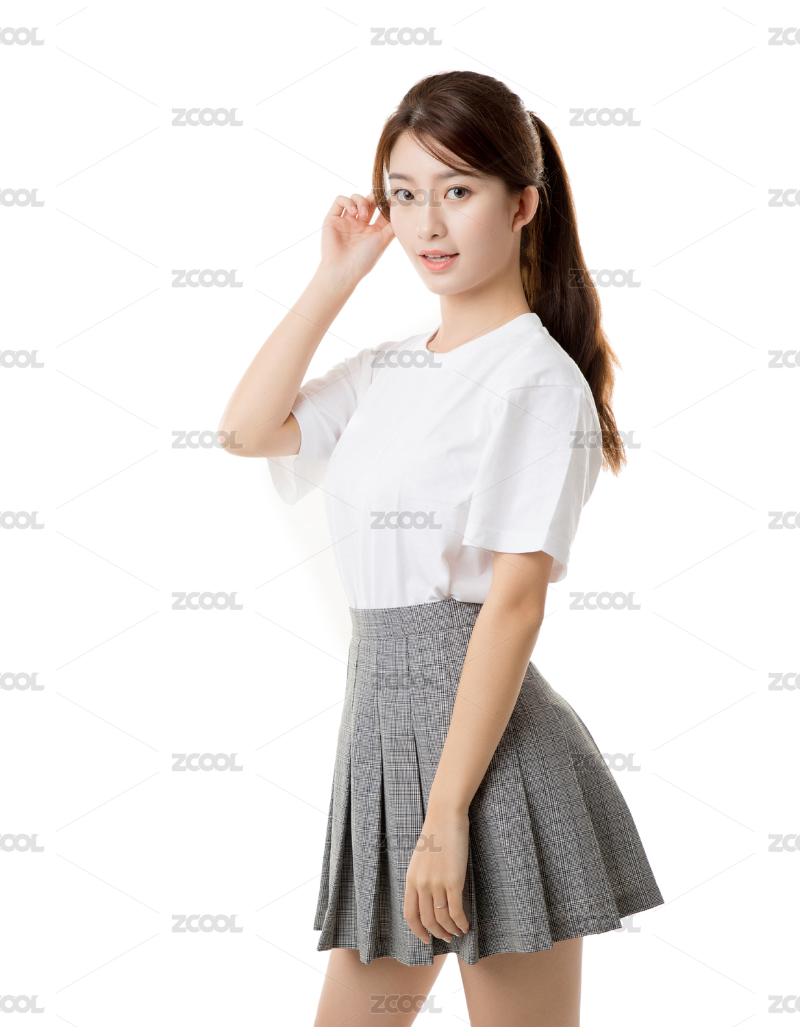 白色背景下的棚拍可爱美女大学生