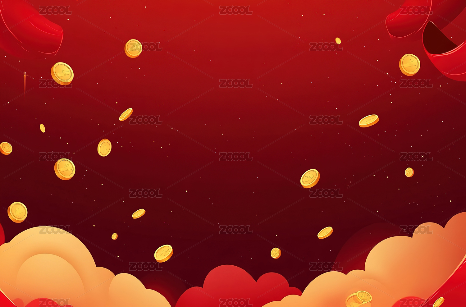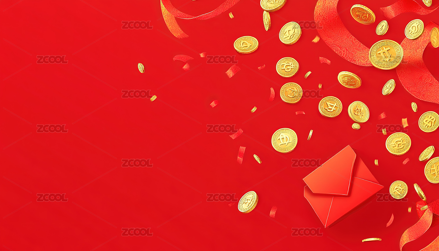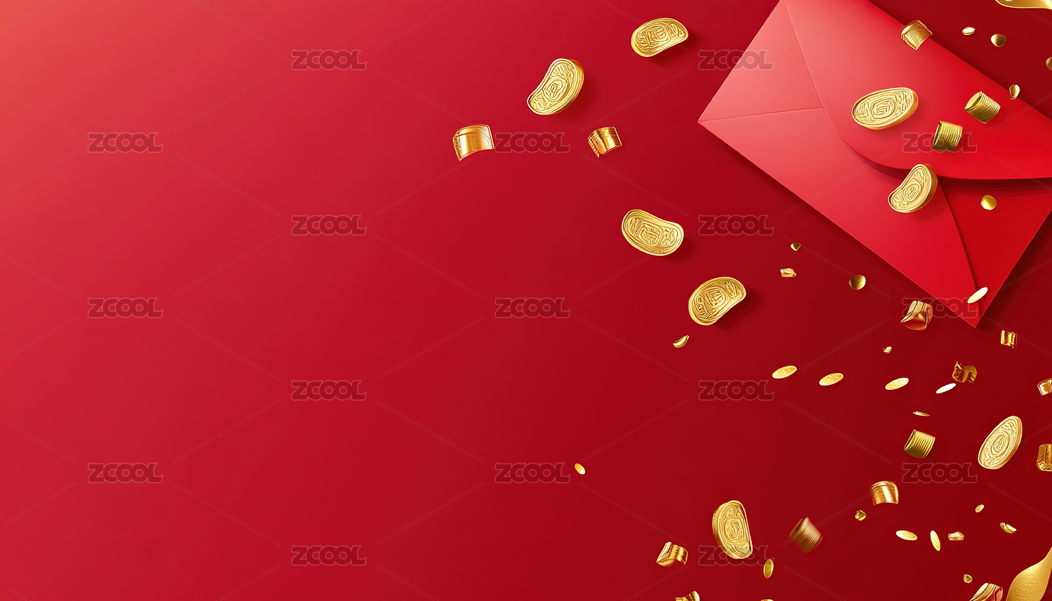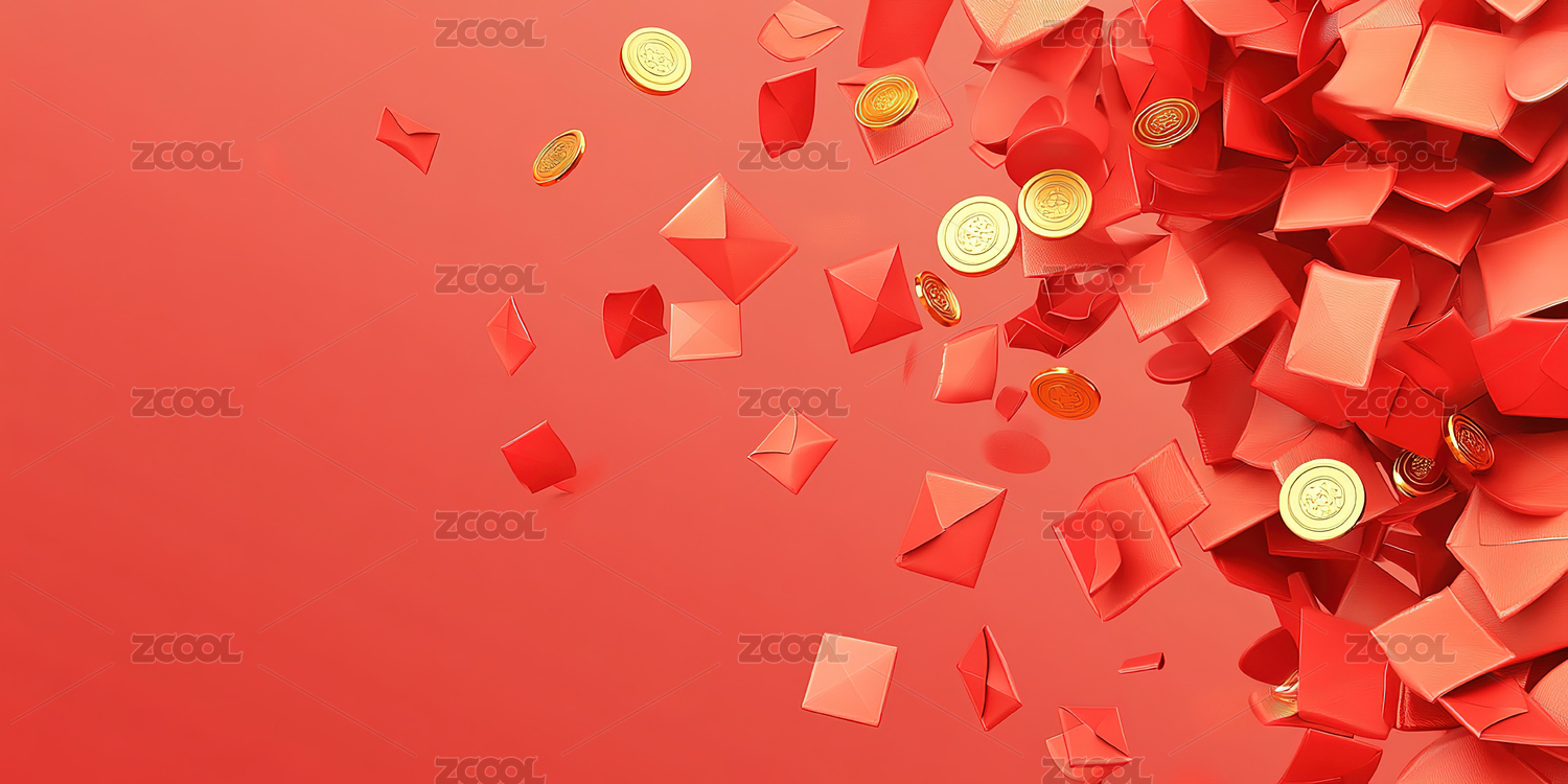 红包与红色飘带场景