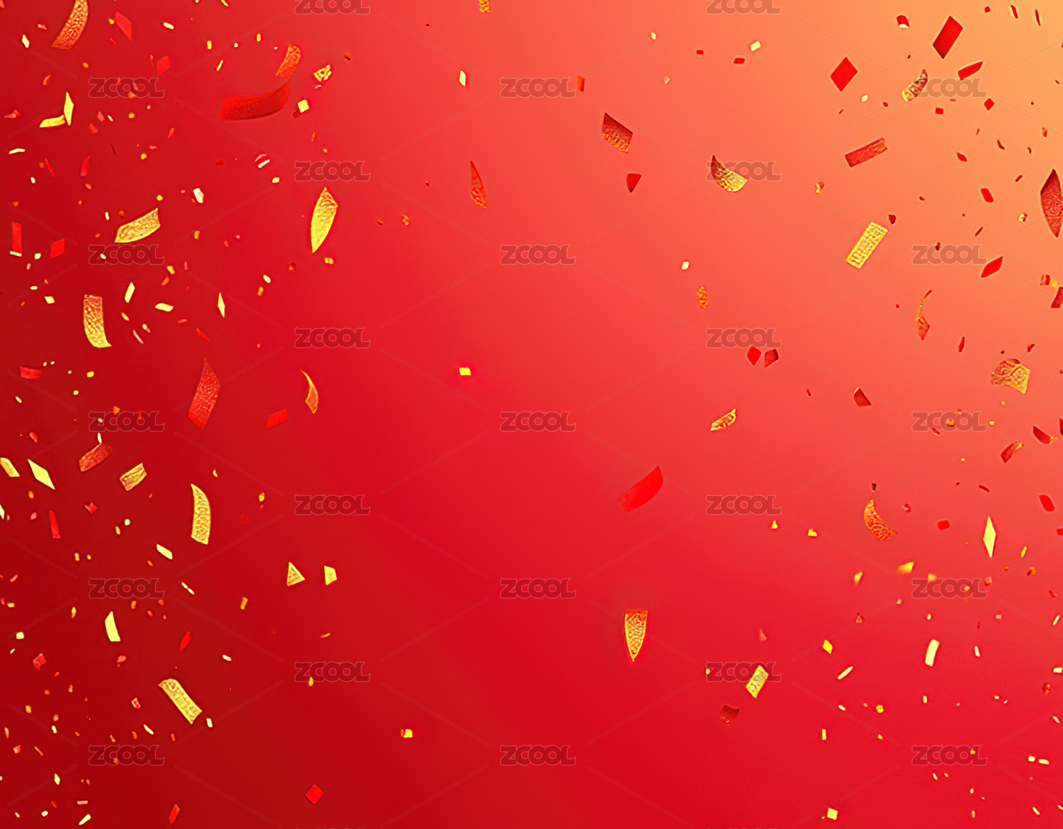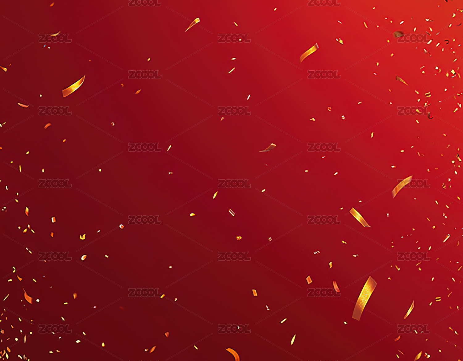 红色背景上的金色和金色五彩纸屑