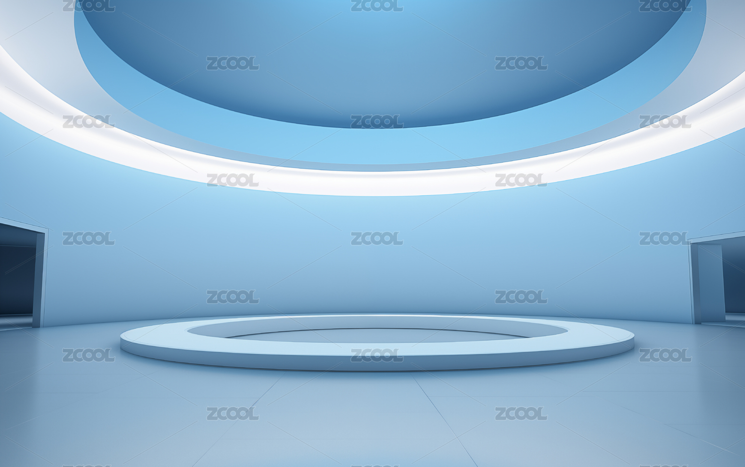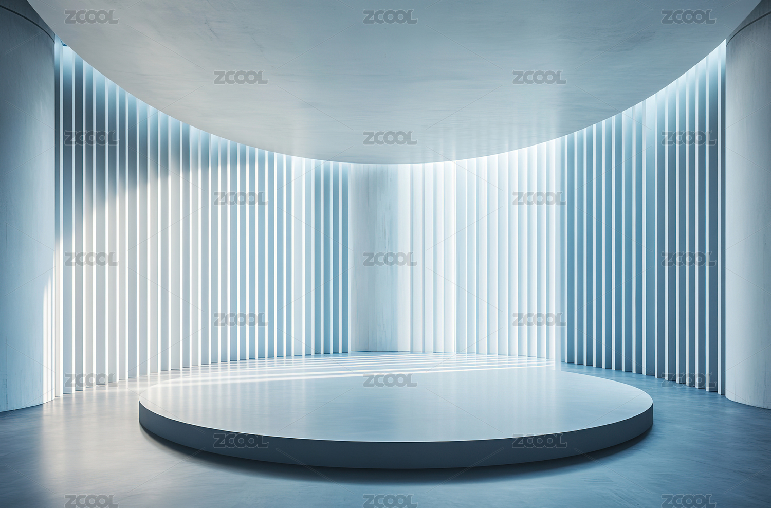 3D渲染极简风格的圆形展厅
