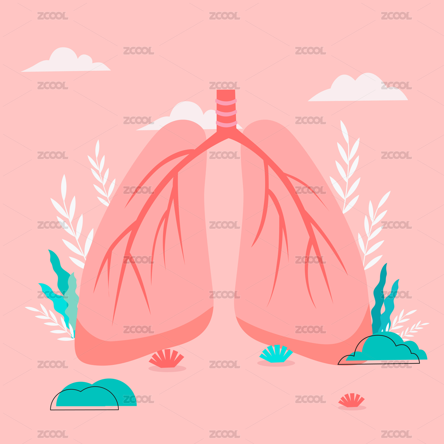 绿色扁平风矢量肺科场景肺部放大镜元素