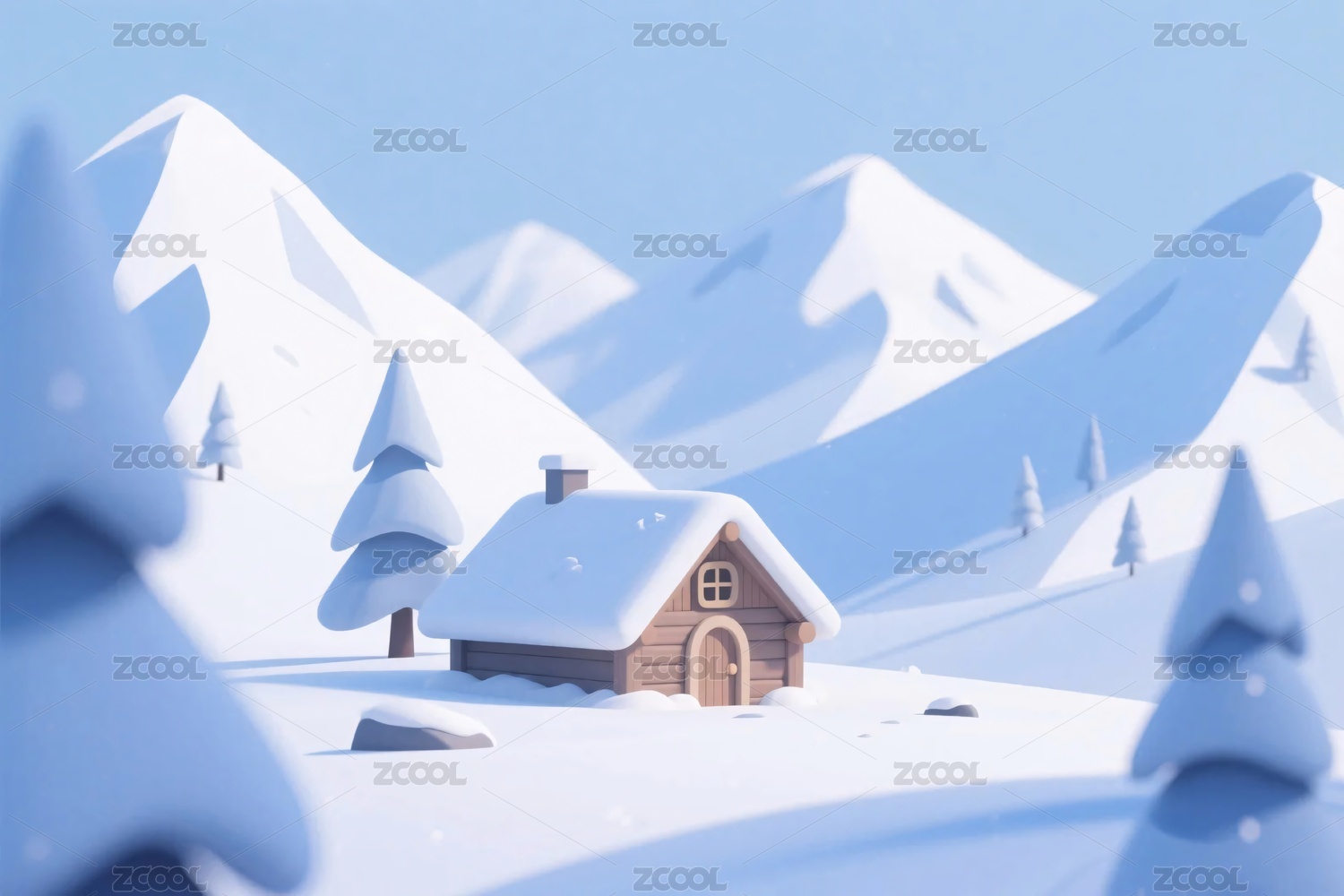 冬天,雪地,落满,积雪,植物,户外,景色,3D,卡通,立体