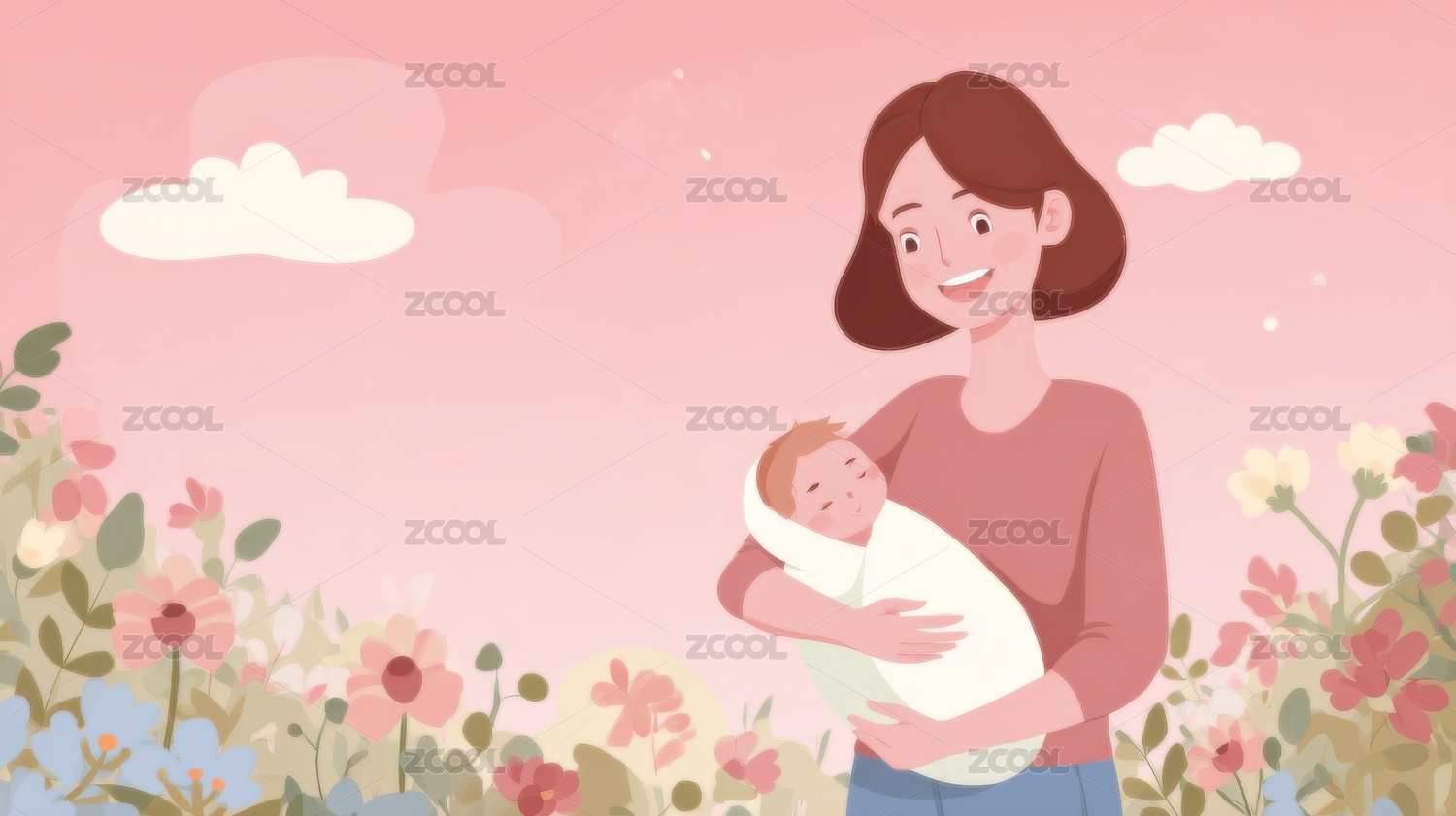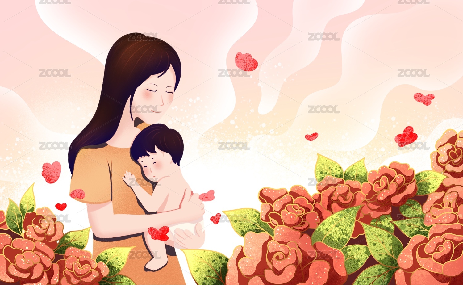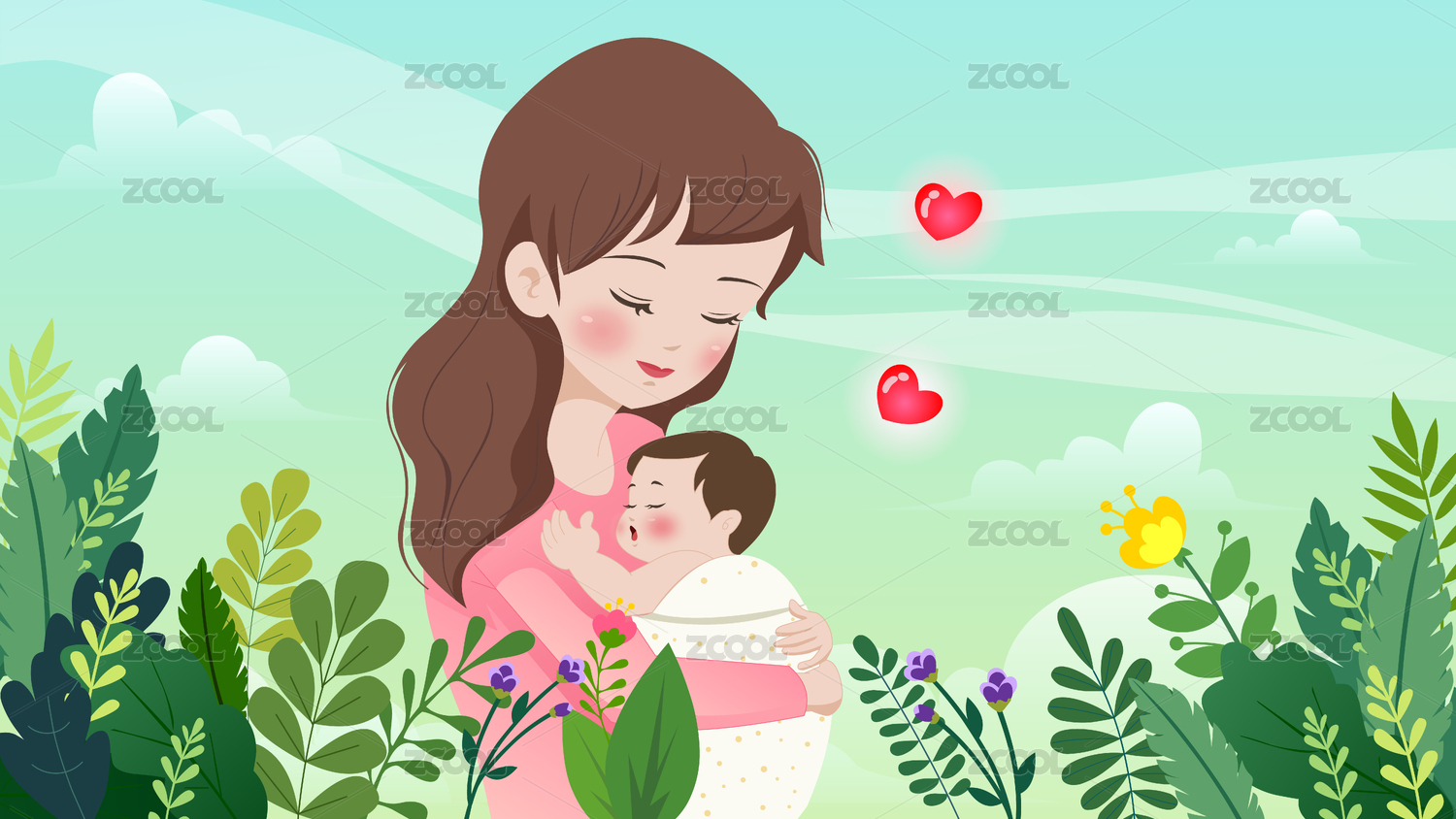 母亲节妈妈抱着婴儿萌宝插画矢量图