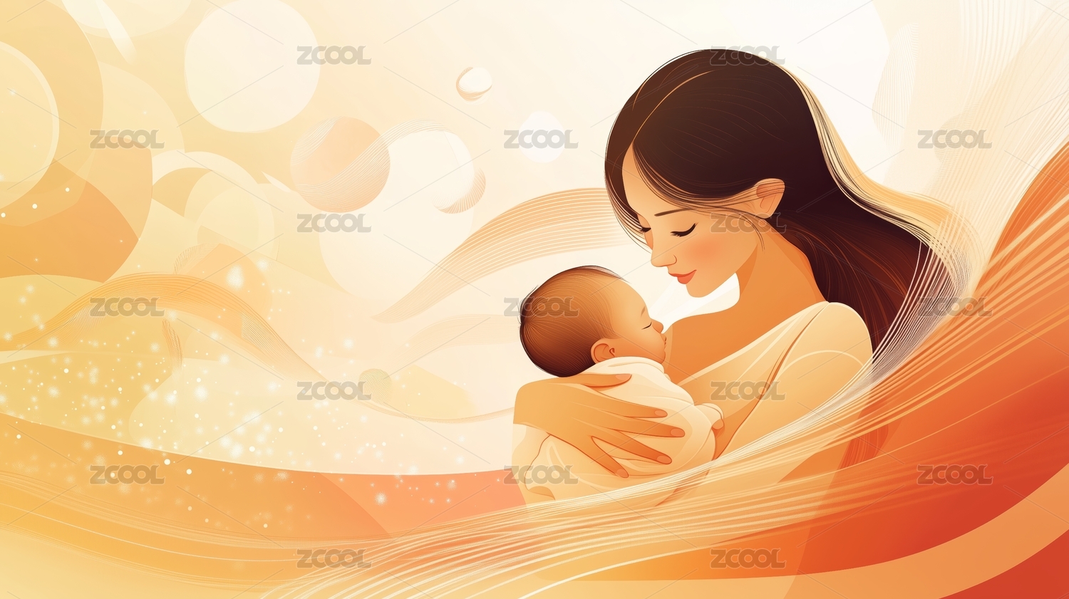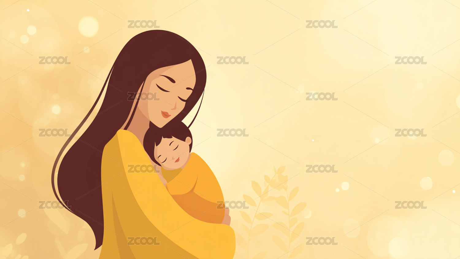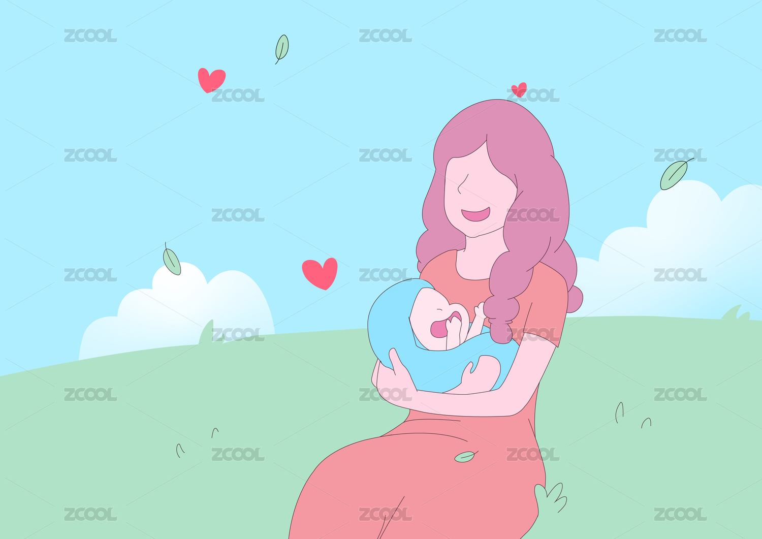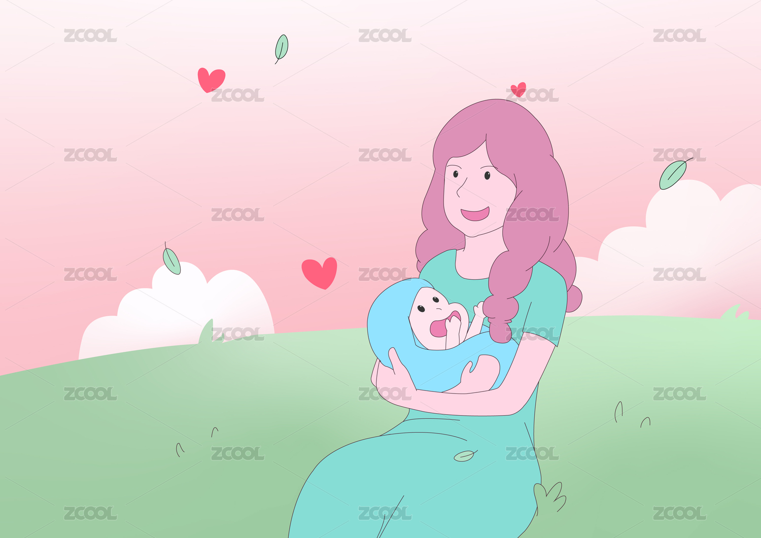 母亲节妈妈抱着婴儿萌宝插画矢量图