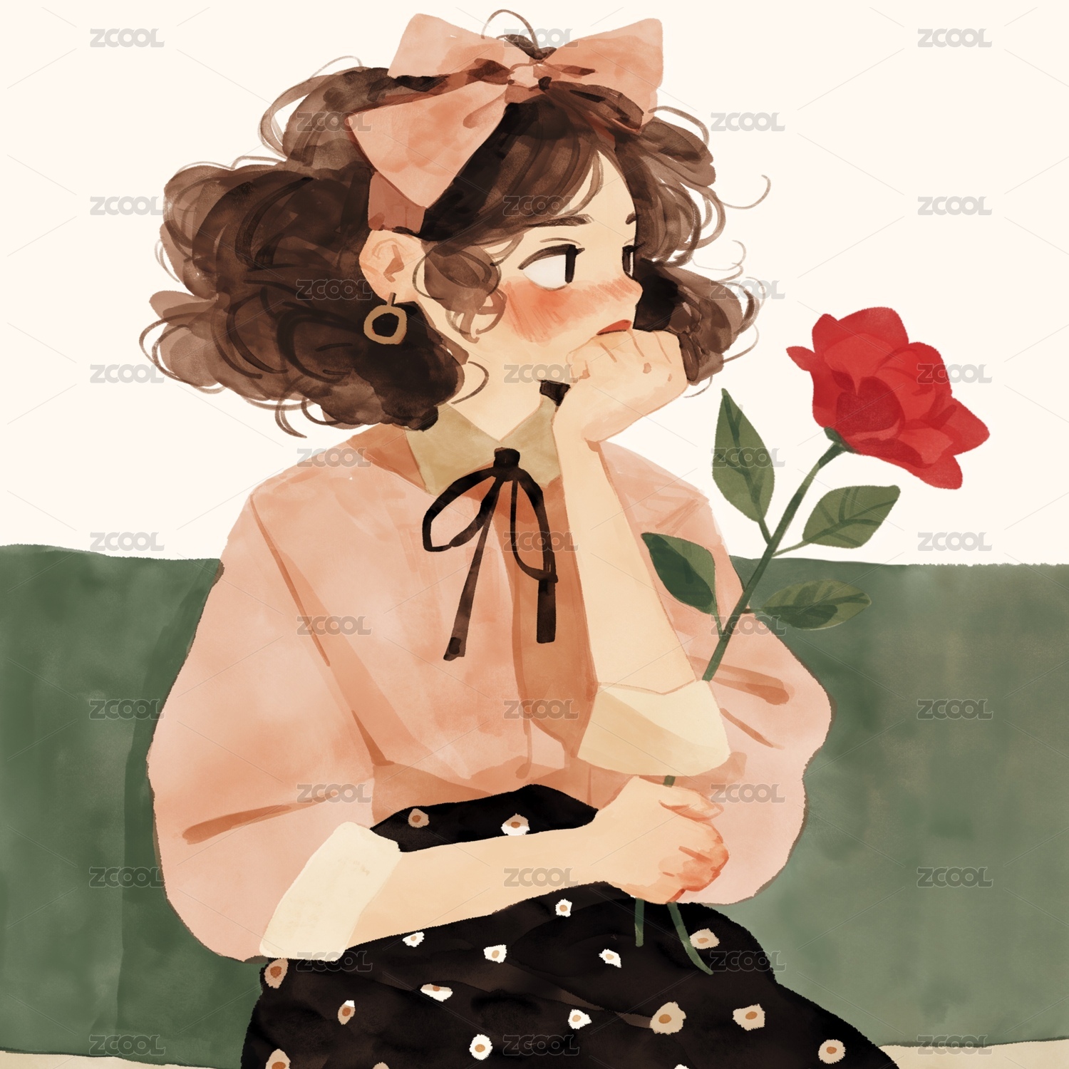 玫瑰花女孩的插画
