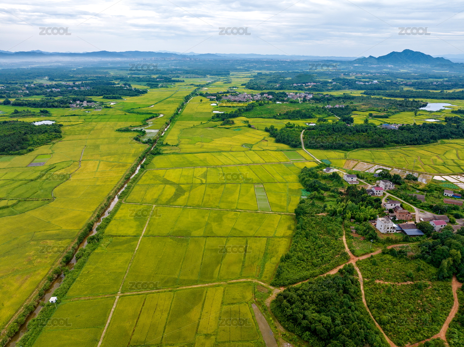 航拍湖南永州宁远县九嶷山下灌村秋天成熟的