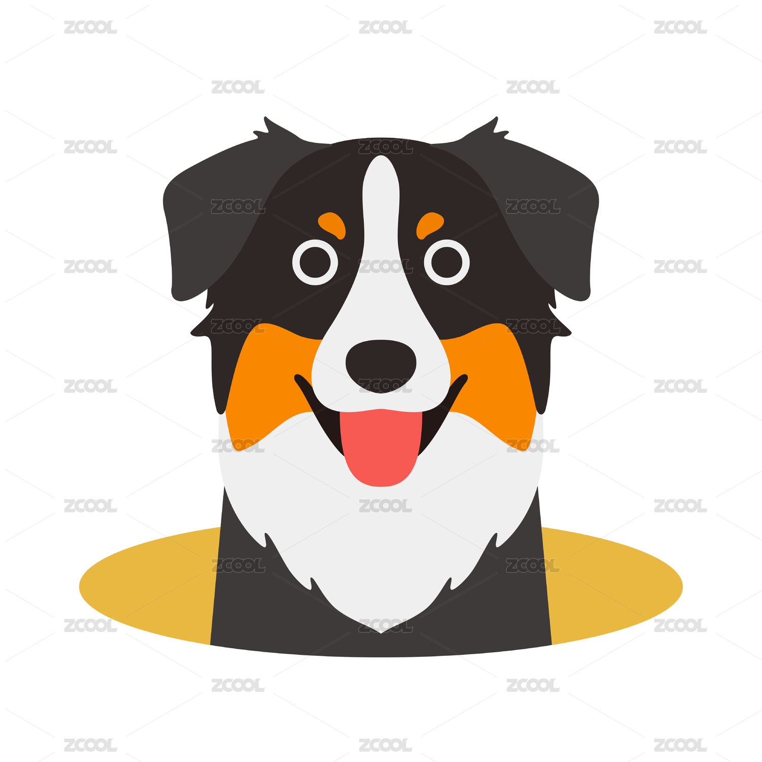 狗,小狗,图案,平面,插画,版画,中景,蓝色,白底