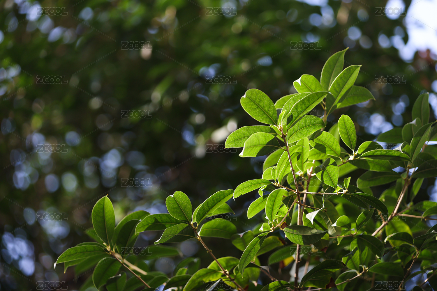 春天,在阳光下闪闪发光的绿色树木树叶叶子