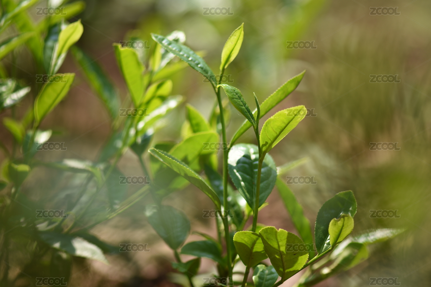 四川雅安牛碾坪茶乡春季雨后的白化茶树叶