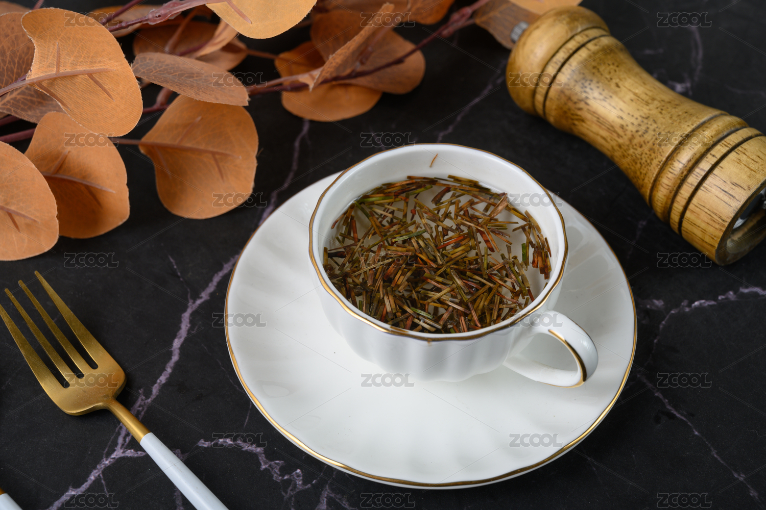 桌面上个的杯子里的甘甜可口的龙胆草茶