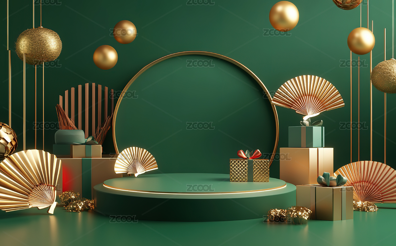 绿色背景下的装饰