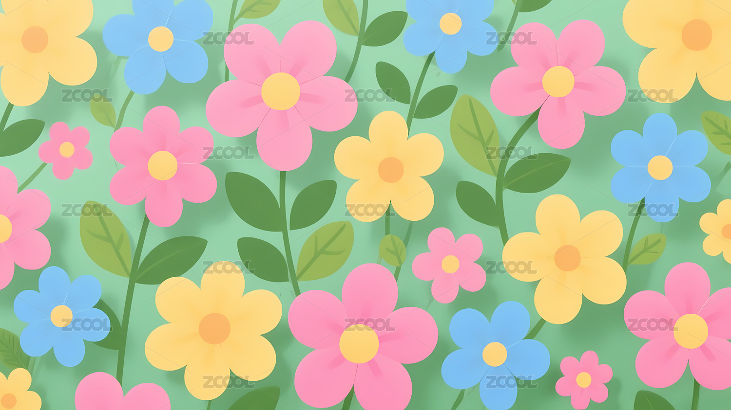 黄色,绿色,花朵,碎花,花卉,背景,水彩画,花,卡通,插画