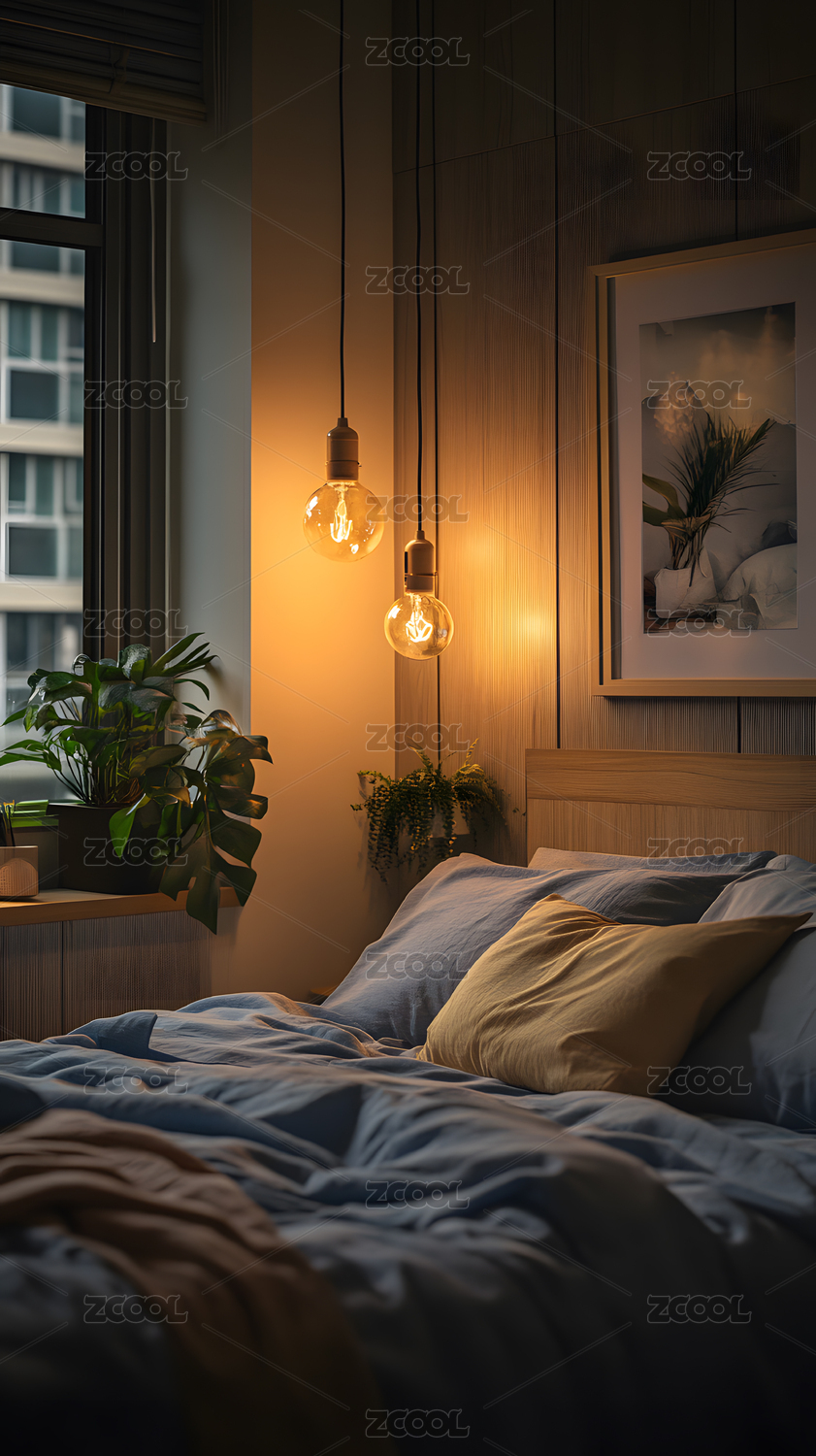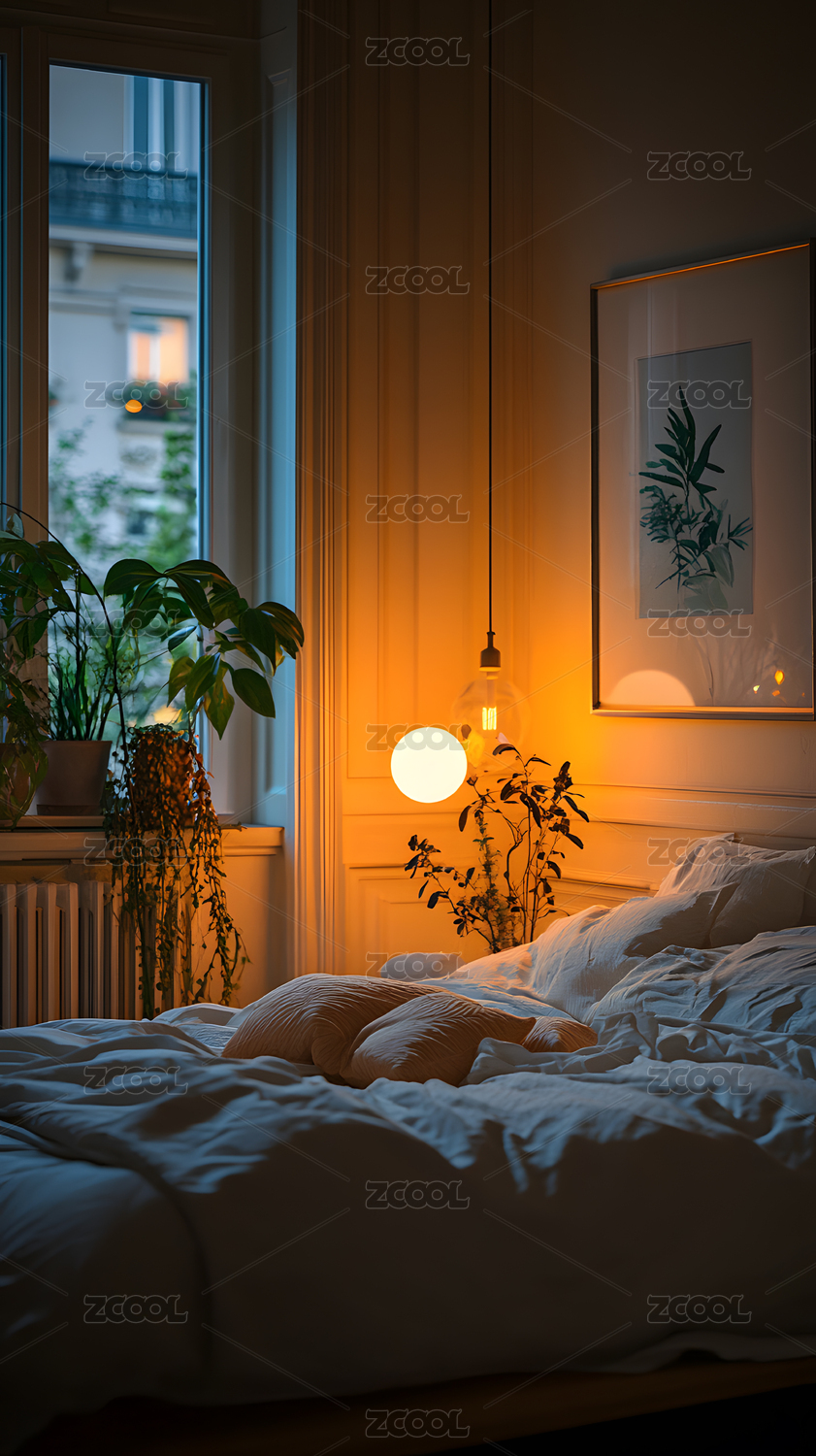 温暖舒适的卧室夜晚灯光