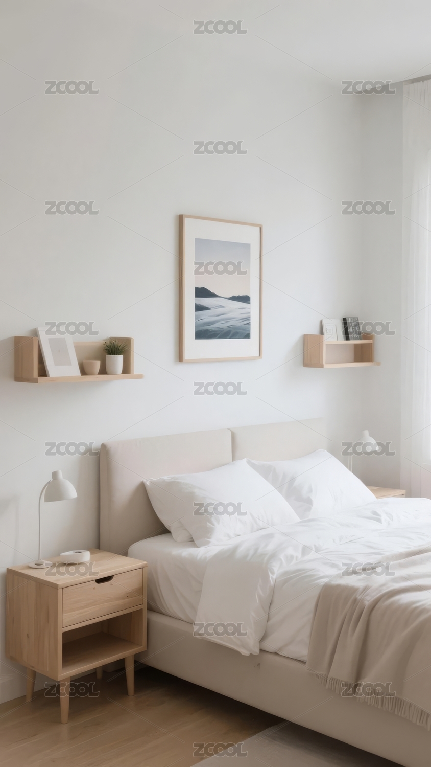 简约现代风格卧室床头柜与装饰画