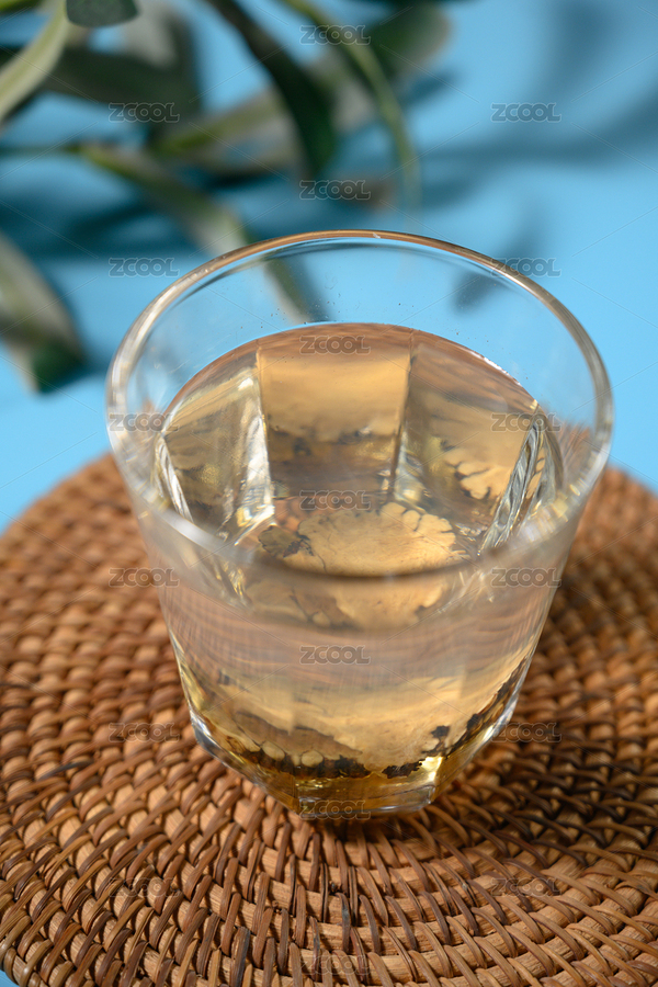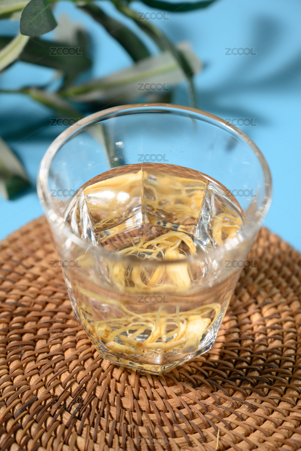 桌面上的杯子里的的甘甜可口的西洋参茶