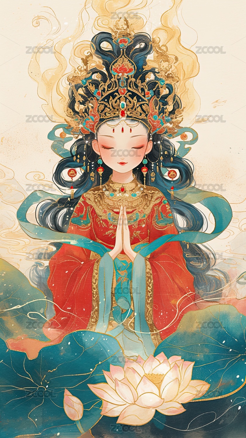 观音菩萨卡通动漫插画