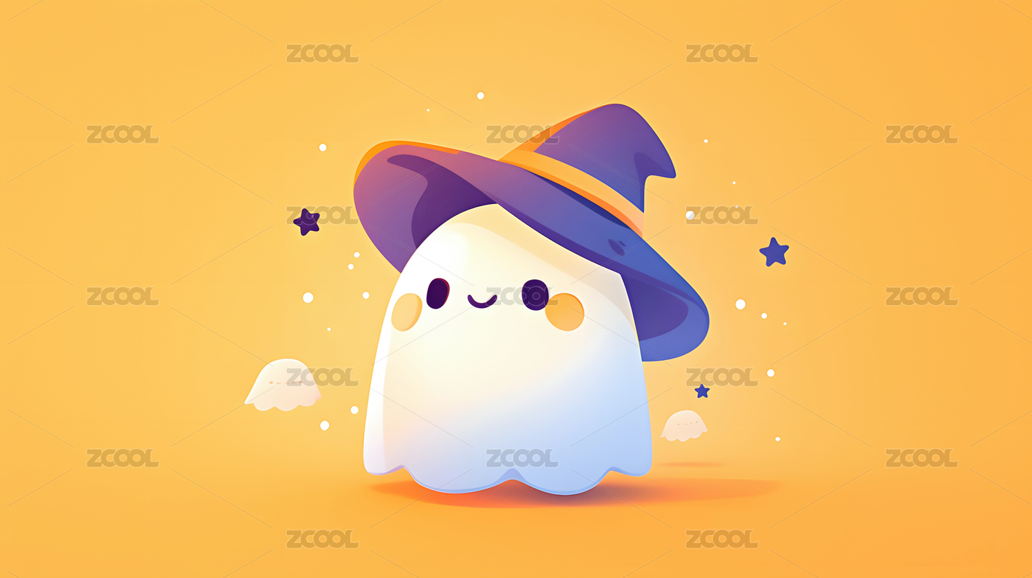 可爱幽灵巫帽与南瓜庆祝万圣节