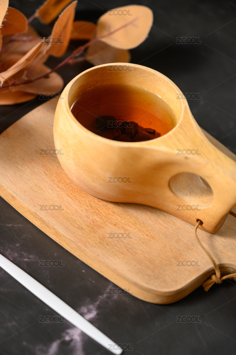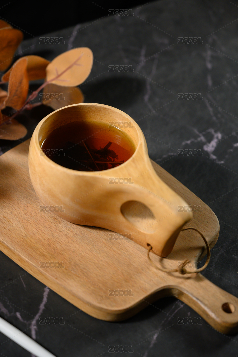 桌面上的杯子里的甘甜可口的胰岛果茶