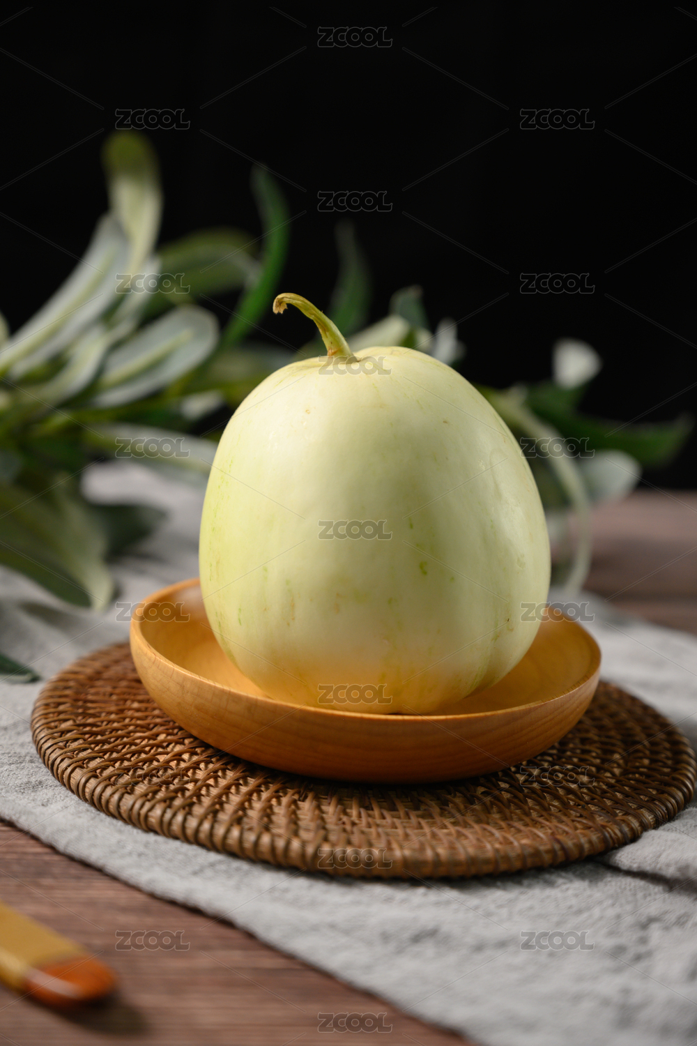 桌面上的盘子里的美味可口的香瓜